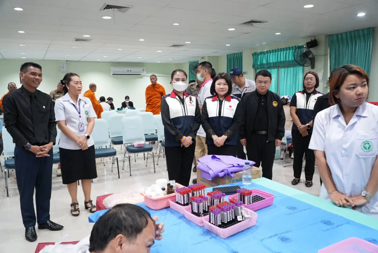 วันที่ 16 ธ.ค.68 ที่ สำนักงานนิคมอุตสาหกรรมเกตเวย์ซิตี้ อำเภอแปลงยาว จังหวัดฉะเชิงเทรา นางสาวฉัตรประอร นิยม ผู้ว่าราชการจังหวัดฉะเชิงเทรา /นายกเหล่ากาชาดจังหวัดฉะเชิงเทรา ประธานตรวจเยี่ยมหน่วยรับบริจาคเลือด (สำรองเลือดเตรียมพร้อมช่วยเหลือโรงพยาบาลในพื้นที่ชายแดนไทย- กัมพูชา) พร้อมด้วย พระเทพภาวนาวชิรคุณ วิ. เจ้าอาวาสวัดโสธรวราราม วรวิหาร เจ้าคณะจังหวัดฉะเชิงเทรา คณะสงฆ์ นายเชิดศักดิ์ ชุ่มนาเสียว นายอำเภอ