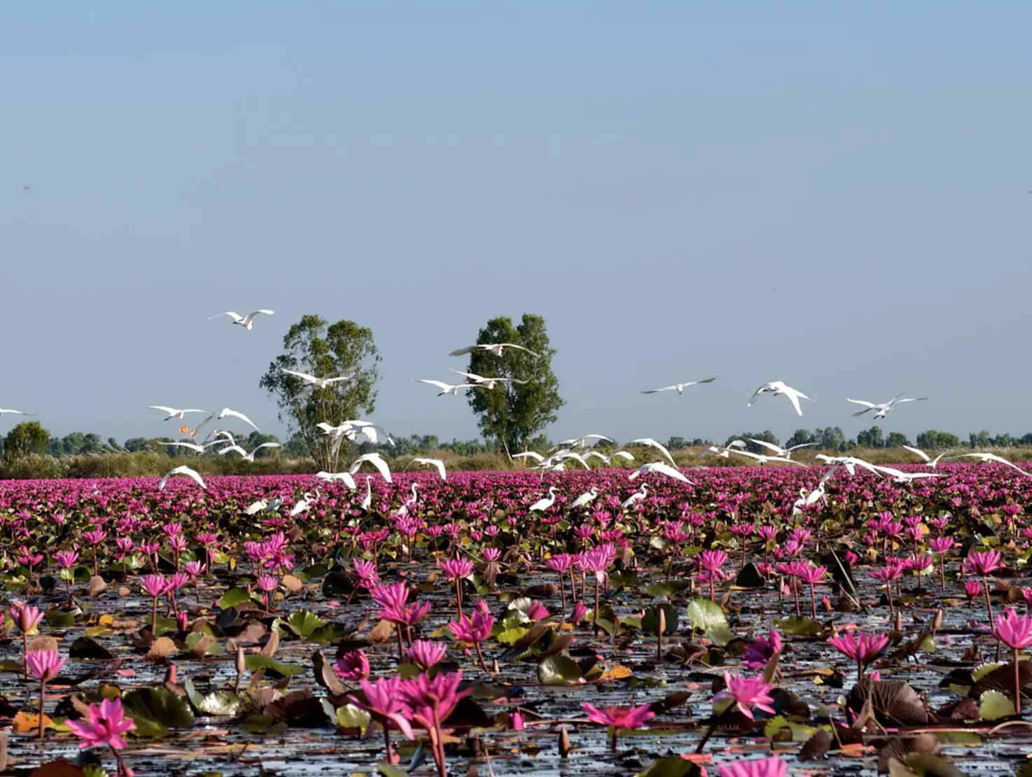 บึงบอระเพ็ด จังหวัดนครสวรรค์ นอกจากเป็นบึงน้ำขนาดใหญ่ที่ได้ชื่อว่าเป็น “อุทยานนกน้ำ” ที่สมบูรณ์ที่สุดแห่งหนึ่งของไทย อยู่ไกลจากกรุงเทพ 239 กิโลเมตร หลายคนอาจยังไม่รู้ว่า ที่นี่มี “ทุ่งบัวแดง” นับพันไร่เป็นเสน่ห์น่าเที่ยวของบึงบอระเพ็ด นครสวรรค์ด้วย