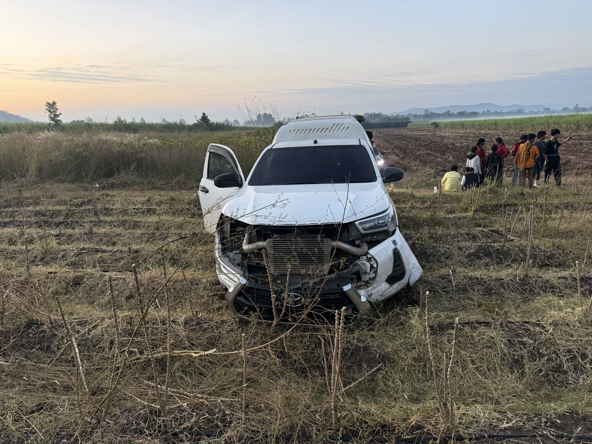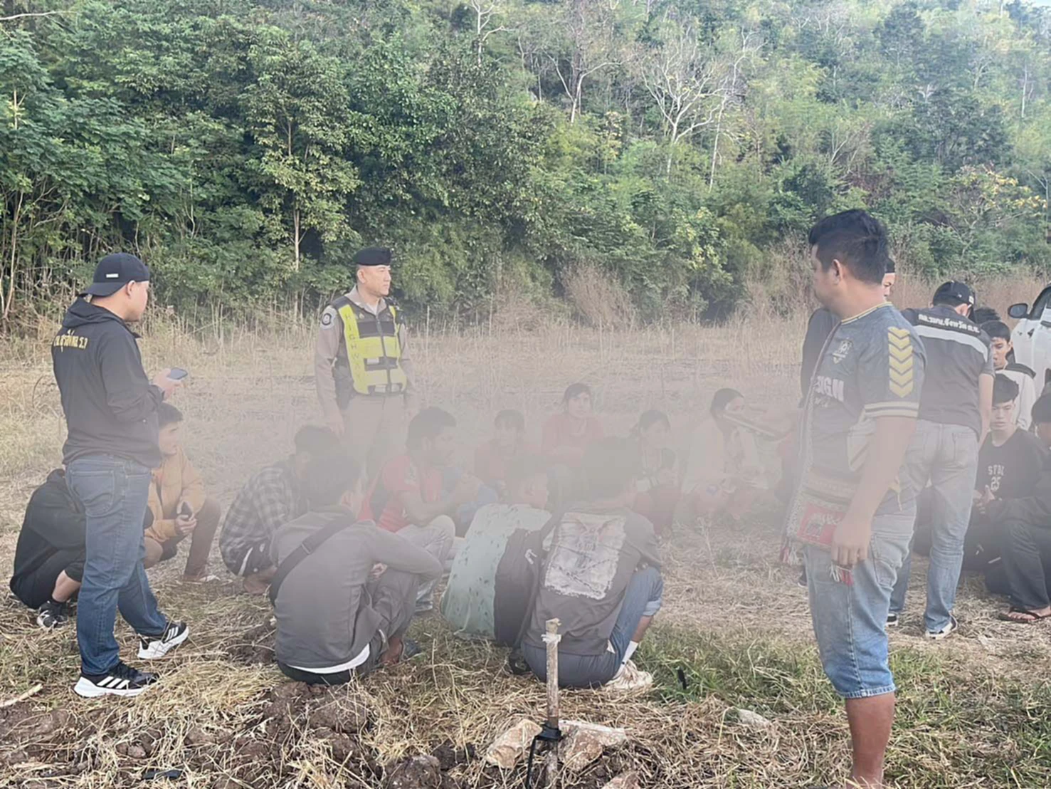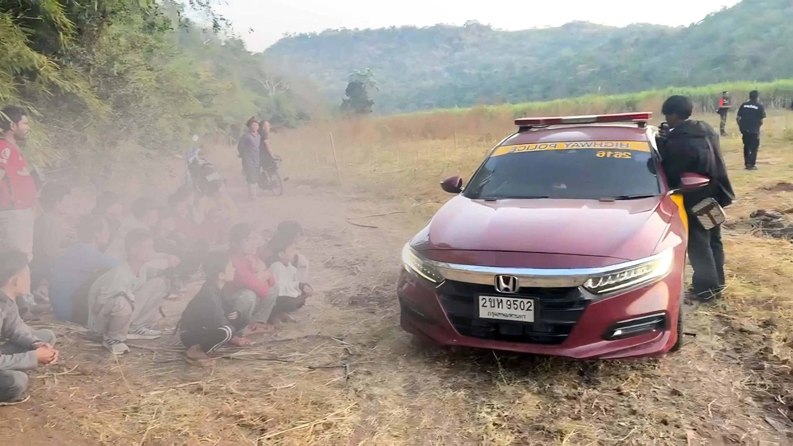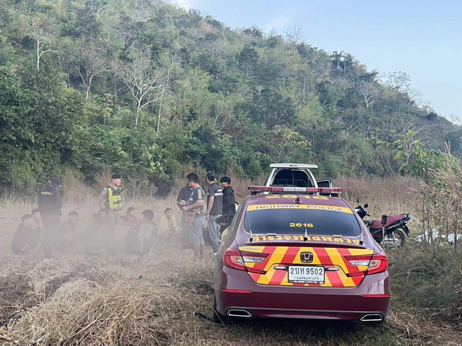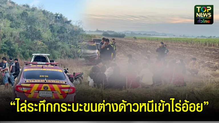 กาญจนบุรี/ไล่ระทึกกระบะขนต่างด้าวหนีเข้าไร่อ้อย หนีกระเจิงเข้าป่า ตร.ทางหลวงให้เปิดลำโพงเรียกออกมา