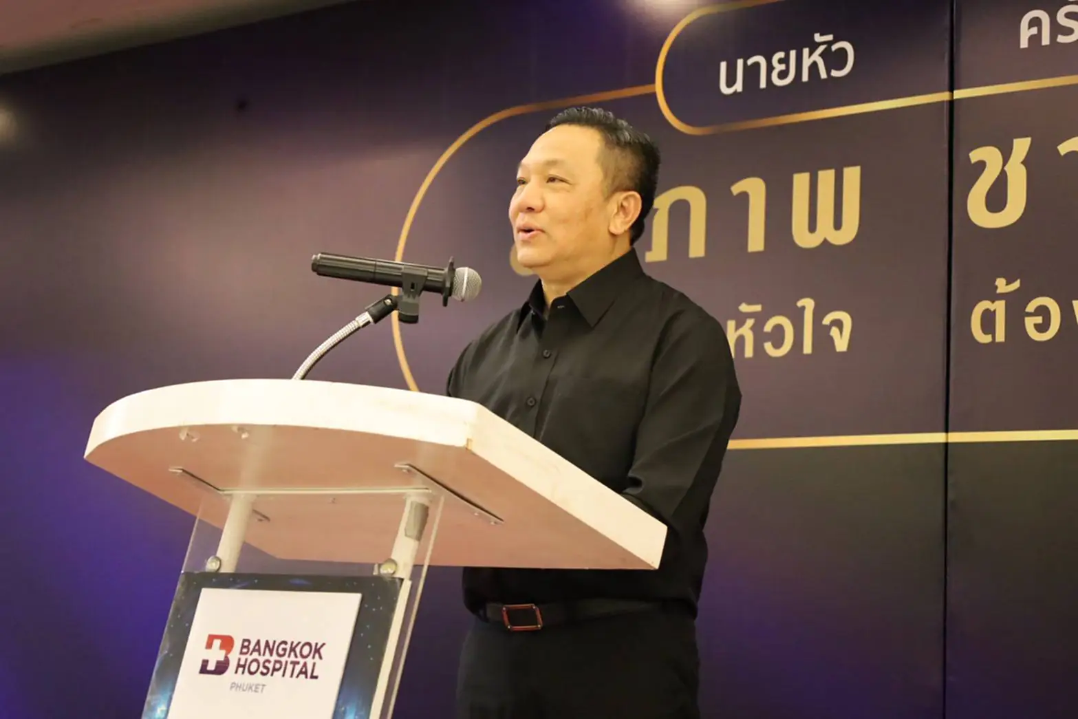 วันที่ 16 ธ.ค. 2568 ผู้สื่อข่าวรายงานว่า ที่โรงพยาบาลกรุงเทพภูเก็ต จัดกิจกรรม “นายหัว ครั้งที่ 6 สุขภาพชายครบสูตร : หัวใจต้องแข็ง–แรงดี” โดยมี นายนิรัตน์ พงษ์สิทธิถาวร ผู้ว่าราชการจังหวัดภูเก็ต เป็นประธานในพิธีเปิด พร้อมด้วย แพทย์หญิงลลิตา กองสีหา ผู้ช่วยประธานคณะผู้บริหาร กลุ่ม 6 บริษัท กรุงเทพดุสิตเวชการ จำกัด (มหาชน) ผู้อำนวยการโรงพยาบาลกรุงเทพภูเก็ตและโรงพยาบาลดีบุก รวมถึงหน่วยงานที่เกี่ยวข้องและประชาชนเข้าร่วมกิจกรรมอย่างคับคั่ง