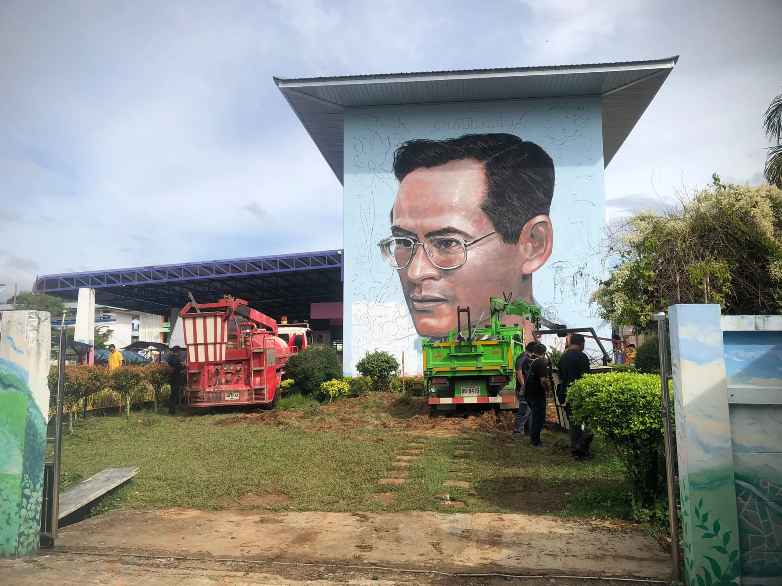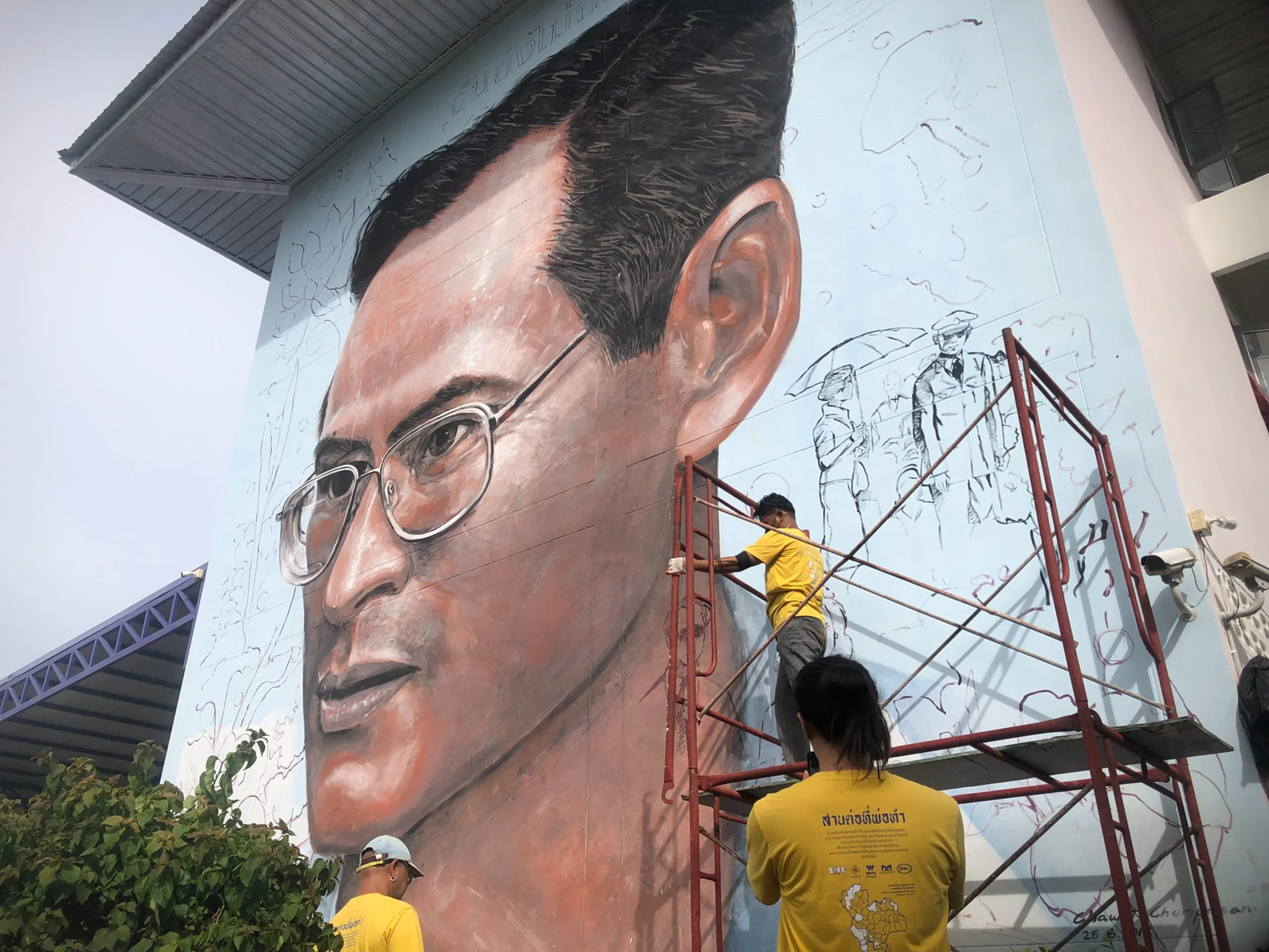 นายนิรัตน์ จำปาแสน หรือ ครูอะไหล่ ประธานโครงการสตรีทอาร์ตคิงภูมิพล เปิดเผยว่า โครงการสตรีทอาร์ตคิงภูมิพลเริ่มต้นที่อำเภอเบตง จังหวัดยะลา โดยกลุ่มศิลปินจิตอาสาได้ร่วมกันระดมทุนและสร้างภาพพระบรมสาทิสลักษณ์ของรัชกาลที่ 9 ใน 26 จังหวัด รวม 37 ผลงาน และยังมีภารกิจบูรณะภาพเก่าให้กลับมามีชีวิตอีกครั้ง โดยครั้งนี้ใช้สีเกรดพรีเมียมสนับสนุนจาก WorldPaint และจะประดับตกแต่งเพิ่มเติม รวมถึงวาดภาพพระบรมสาทิสลักษณ์ของสมเด็จพระนางเจ้าสิริกิติ์ พระบรมราชินีนาถ พระบรมราชชนนีพันปีหลวงควบคู่ด้วย