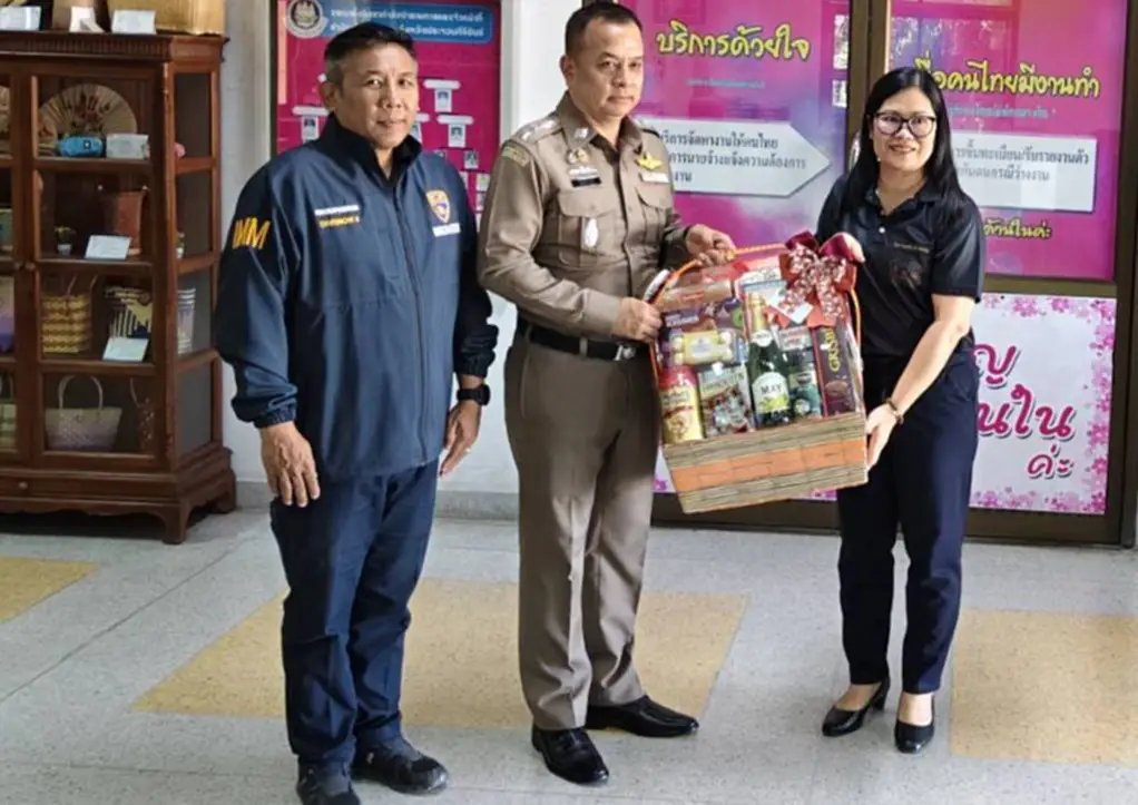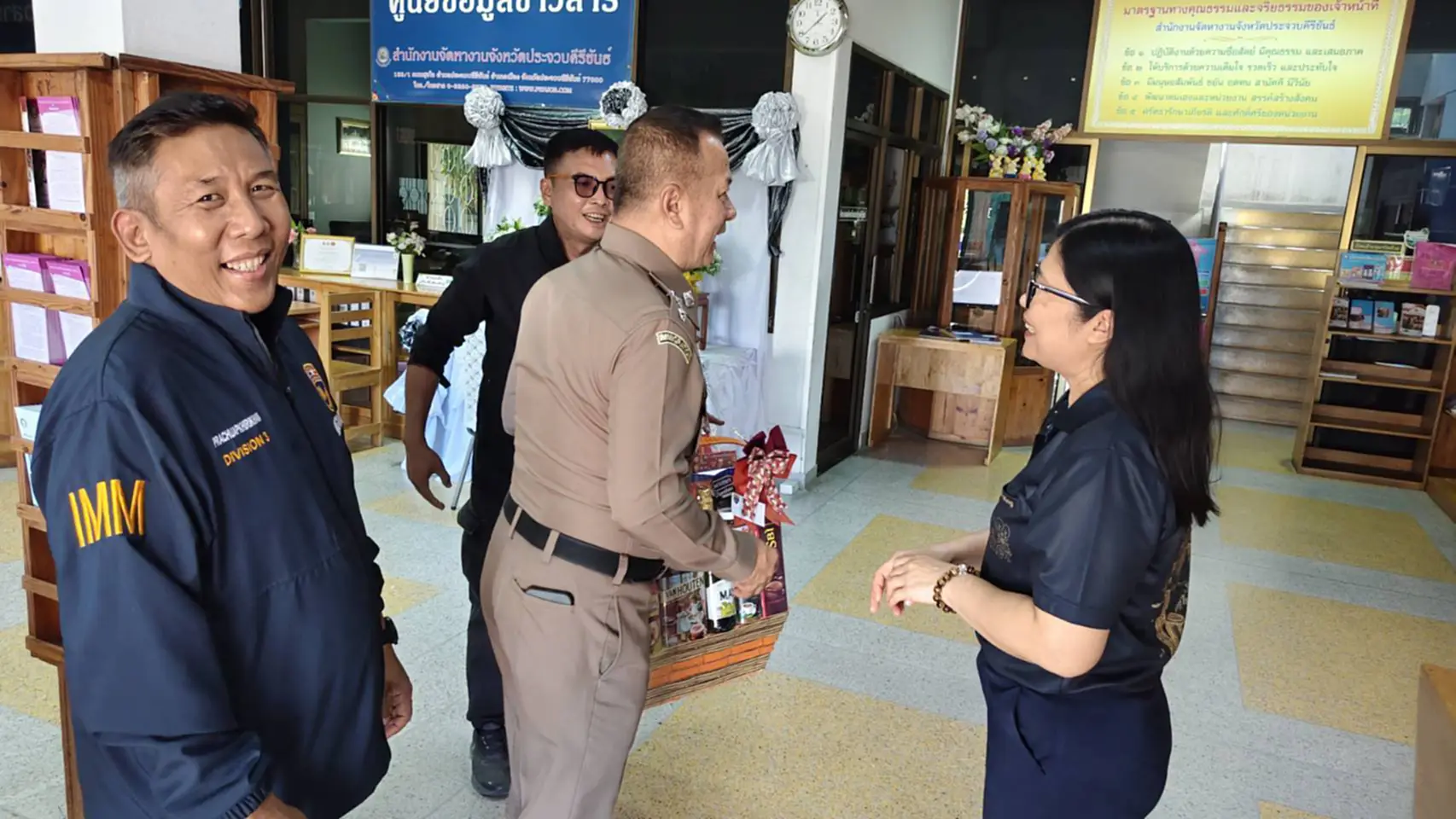 วันที่ 16 ธ.ค. 2568 ผู้สื่อข่าวรายงานว่า พ.ต.อ.เทียนชัย ชมภู ผู้กำกับการตรวจคนเข้าเมืองจังหวัดประจวบคีรีขันธ์ เดินทางเข้ามอบกระเช้าของขวัญและกล่าวอวยพรเนื่องในโอกาสวันขึ้นปีใหม่ แก่ นางสาวเยาวดี อุดไธสง รักษาการจัดหางานจังหวัดประจวบคีรีขันธ์ ณ สำนักงานจัดหางานจังหวัดประจวบคีรีขันธ์ เพื่อเป็นการแสดงความปรารถนาดีและกระชับความสัมพันธ์อันดีระหว่างหน่วยงาน