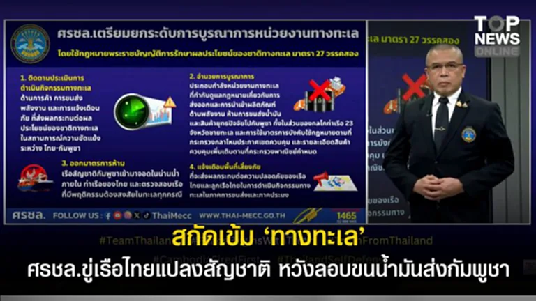 “โฆษก ศรชล.” กาง 4 มาตรการ เอาผิด “เรือไทยแปลงสัญชาติ” สกัดลอบขนน้ำมันส่งกัมพูชา – Top News รายงาน