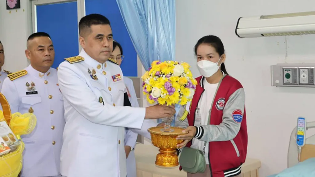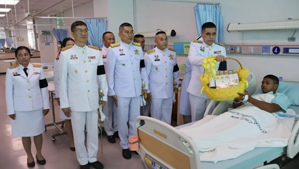 วันนี้ (17 ธันวาคม 2568) เวลา 13.30 น. ณ โรงพยาบาลค่ายสุรนารี อำเภอเมือง จังหวัดนครราชสีมา พระบาทสมเด็จพระเจ้าอยู่หัว ทรงพระกรุณาโปรดเกล้าโปรดกระหม่อม ให้ นายอนุพงศ์ สุขสมนิตย์ ผู้ว่าราชการจังหวัดนครราชสีมา เชิญแจกันดอกไม้และตะกร้าสิ่งของพระราชทาน ของพระบาทสมเด็จพระเจ้าอยู่หัว และสมเด็จพระนางเจ้าฯ พระบรมราชินี ไปมอบแก่กำลังพลที่ได้รับบาดเจ็บจากเหตุปะทะในพื้นที่ชายแดนไทย–กัมพูชา เพื่อเป็นขวัญและกำลังใจ