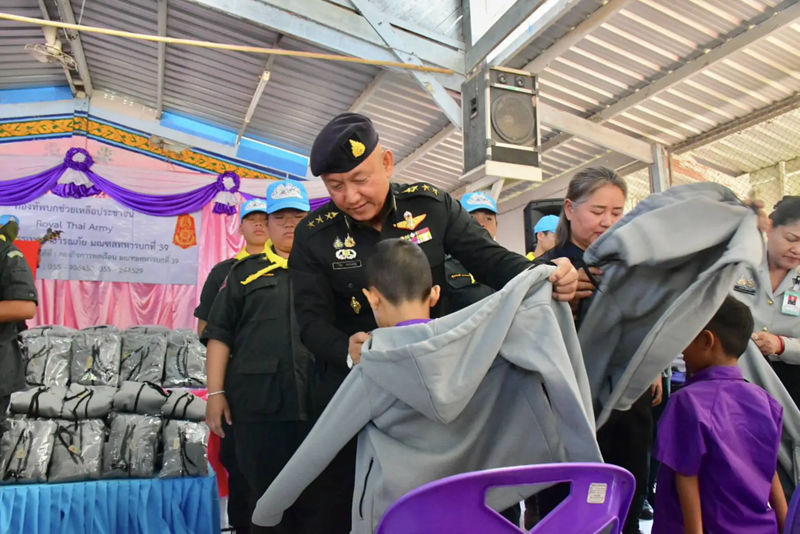 เมื่อวันที่ 17 ธันวาคม 2568 เวลา 09.00 พันเอก วิชา อมระดิษฐ รองผู้บัญชาการมณฑลทหารบกที่ 39 / รองผู้อำนวยการศูนย์บรรเทาสาธารณภัยมณฑลทหารบกที่ 39 ประสานความร่วมมือกับ บริษัท เซ็นทรัล กรุ๊ป และเซนทรัลพิษณุโลก ลงพื้นที่จัดกิจกรรม “สานใจ – สร้างไออุ่น” ครั้งที่ 29 มอบเสื้อกันหนาวในพื้นที่ประสบภัย ณ หอประชุมโรงเรียนราษฎร์ดำริ ตำบลโคกสลุด อำเภอบางกระทุ่ม จังหวัดพิษณุโลก โดยมีผู้นำท้องที่ – ท้องถิ่น คณะครู – นักเรียน และพี่น้องประชาชนให้การต้อนรับ