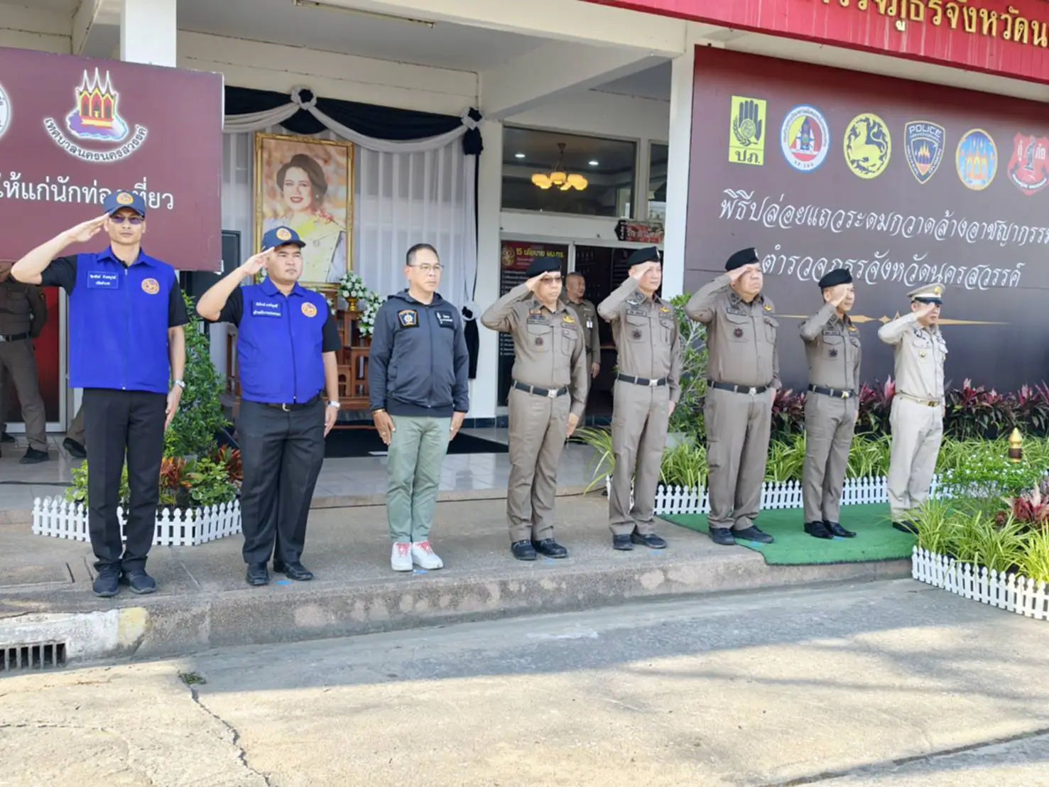 วันที่ 17 ธันวาคม 2568 บริเวณด้านหน้าอาคารตำรวจภูธรจังหวัดนครสวรรค์ อำเภอเมืองนครสวรรค์ จังหวัดนครสวรรค์ พลตำรวจตรีนเรวิช สุคนธวิท ผู้บังคับการตำรวจจังหวัดนครสวรรค์ เป็นประธานในพิธีปล่อยแถวป้องกันปราบปรามอาชญากรรม การรักษาความสงบเรียบร้อย การบังคับใช้กฎหมายและอำนวยความสะดวกด้านการจราจรในช่วงวันคริสต์มาสและเทศกาลปีใหม่ โดยมี นายเศวต เพชรนุ้ย รองผู้ว่าราชการจังหวัดนครสวรรค์ พร้อมด้วยรองผู้บังคับการตำรวจภูธรจังหวัดนครสวรรค์ กำลังพลและเจ้าหน้าที่จากสถานีตำรวจภูธร กองอำนวยการรักษาความมั่นคงภายในจังหวัดนครสวรรค์ กองอาสารักษาดินแดนจังหวัดนครสวรรค์ และหน่วยงานที่เกี่ยวข้อง เข้าร่วมในพิธีปล่อยแถวในครั้งนี้