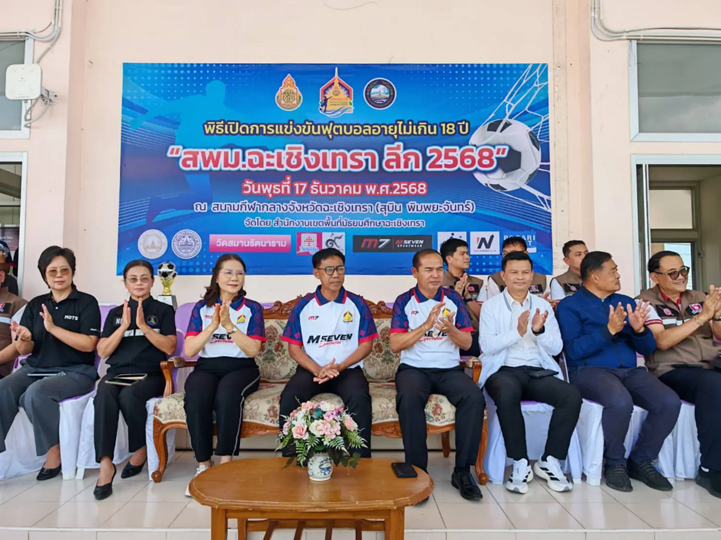 คณะ กต.ตร. สภ.เมืองฉะเชิงเทรา พร้อมด้วยคณะที่ปรึกษา ได้เดินทางมาร่วมเป็นเกียรติในพิธีเปิดการแข่งขันฟุตบอลนักเรียน รุ่นอายุไม่เกิน 18 ปี รายการ “สพม. ลีก 2568” (SPM League 2025)