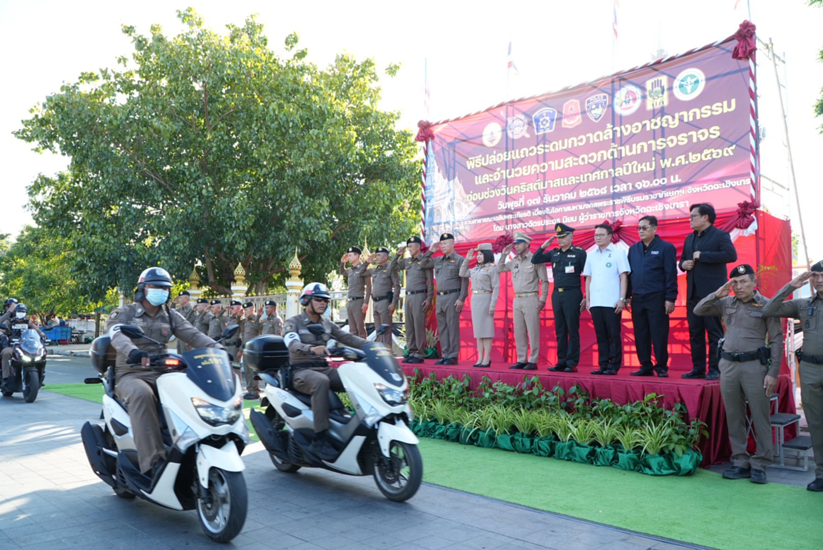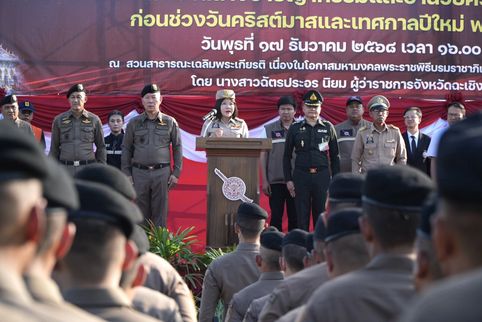 วันที่ 17 ธันวาคม 2568 เวลา 16.00 น. ที่ บริเวณสวนสาธารณะเฉลิมพระเกียรติ หน้าวัดโสธรวราราม วรวิหาร จังหวัดฉะเชิงเทรา นางสาวฉัตรประอร นิยม ผู้ว่าราชการจังหวัดฉะเชิงเทรา เป็นประธานพิธีปล่อยแถวระดมกวาดล้างอาชญากรรมในช่วงวันคริสต์มาส และเทศกาลปีใหม่ 2569 ซึ่งทางกองบังคับการตำรวจภูธรจังหวัดฉะเชิงเทรา ร่วมกับสถานีตำรวจในพื้นที่จังหวัดฉะเชิงเทรา กอ.รมน.ฉะเชิงเทรา กรมการปกครอง ขนส่งจังหวัดฉะเชิงเทรา สาธารณสุข และหน่วยกู้ภัยฉะเชิงเทรา จำนวน 257 นาย เพื่อลดปัญหาอาชญากรรม ยาเสพติด และภัยคุกคาม