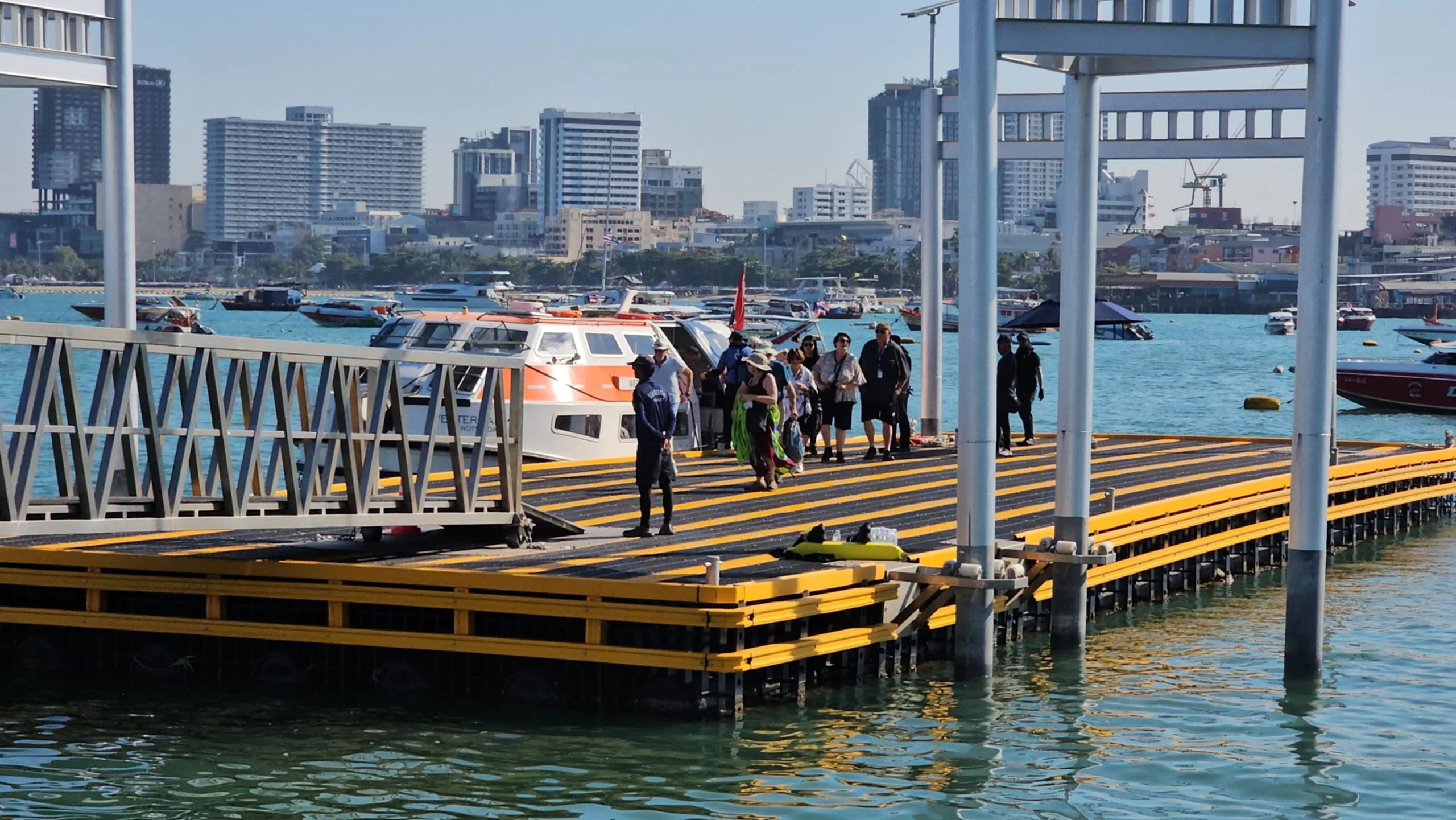 ขณะที่ ตำรวจตรวจคนเข้าเมือง จ.ชลบุรี , กรมเจ้าท่าเมืองพัทยา , ตำรวจท่องเที่ยว , ตำรวย สภ.เมืองพัทยา และ ทีมกู้ภัยทางทะเลเมืองพัทยา มีการลงพื้นที่มาดูแลความปลอดภัย และ อำนวยความสะดวกนักท่องเที่ยว ตั้งแต่เรือเริ่มจอดทอดสมอ แล้วทยอยพานักท่องเที่ยวและลูกเรือ มาขึ้นฝั่งบริเวณท่าเทียบเรือแหลมบาลีฮายพัทยาใต้ ซึ่งบรรยากาศโดยรวมเป็นไปอย่างคึกคัก