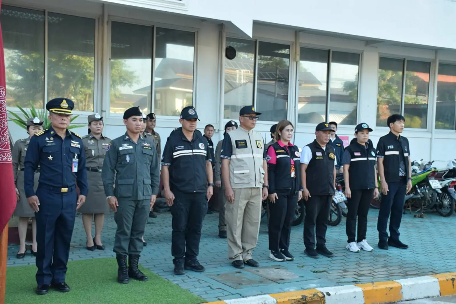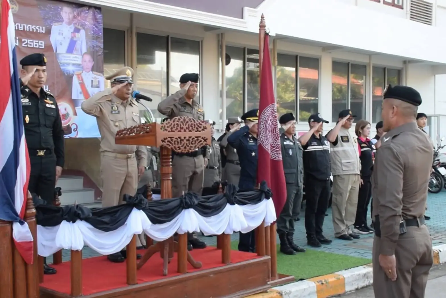 โดยมี พล.ต.ต.ดเรศ กัลยา ผู้บังคับการตำรวจภูธรจังหวัดน่าน พร้อมด้วยหัวหน้าส่วนราชการ หน่วยงานด้านความมั่นคง และภาคีเครือข่าย อาทิ ผู้บังคับฝูงบิน 466 น่าน ผู้กำกับการสถานีตำรวจในพื้นที่ หน่วยทหาร ฝ่ายปกครอง องค์กรปกครองส่วนท้องถิ่น หน่วยแพทย์ การศึกษา ตลอดจนเจ้าหน้าที่ตำรวจ ทหาร อาสาสมัครป้องกันภัยฝ่ายพลเรือน และจิตอาสา เข้าร่วมพิธีอย่างพร้อมเพรียง