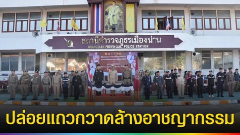 วันที่ 17 ธันวาคม 2568 เวลา 16.00 น. ณ ลานหน้าที่ทำการสถานีตำรวจภูธรเมืองน่าน นายบรรจง ขุนเพชร รองผู้ว่าราชการจังหวัดน่าน เป็นประธานในพิธีปล่อยแถวระดมกวาดล้างอาชญากรรมช่วงวันคริสต์มาสและเทศกาลปีใหม่ 2569 ของตำรวจภูธรจังหวัดน่าน เพื่อเสริมสร้างความปลอดภัยในชีวิตและทรัพย์สินแก่ประชาชนและนักท่องเที่ยวในช่วงเทศกาลสำคัญ