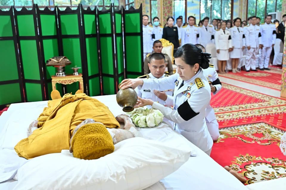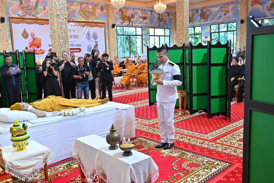 พระบาทสมเด็จพระเจ้าอยู่หัว ทรงพระกรุณาโปรดเกล้าโปรดกระหม่อม พระราชทานน้ำหลวงสรงศพถวายแด่ พระราชมงคลวชิราคม วัดประชาราษฎร์บำรุง จังหวัดนครปฐม