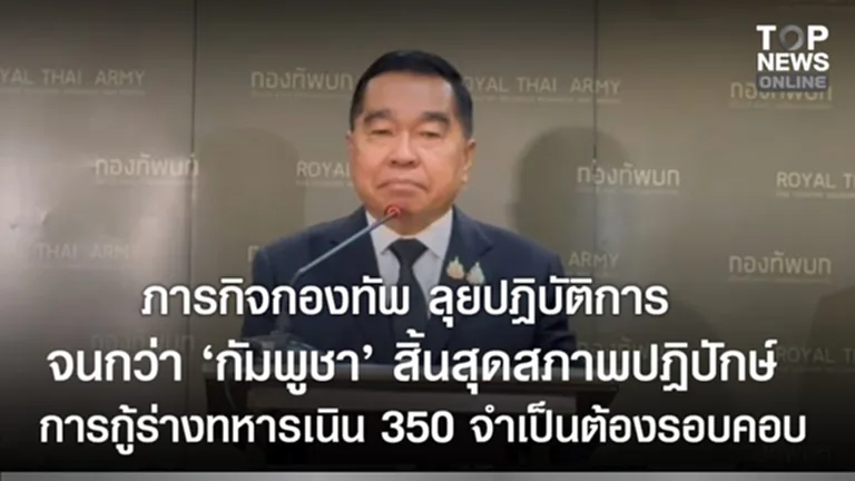 “บิ๊กเล็ก” ย้ำภารกิจกองทัพ ลุยปฏิบัติการ จนกว่า ‘กัมพูชา’ สิ้นสุดสภาพปฏิปักษ์ แจงกู้ร่างทหารเนิน 350 จำเป็นต้องระวัง รอบคอบ