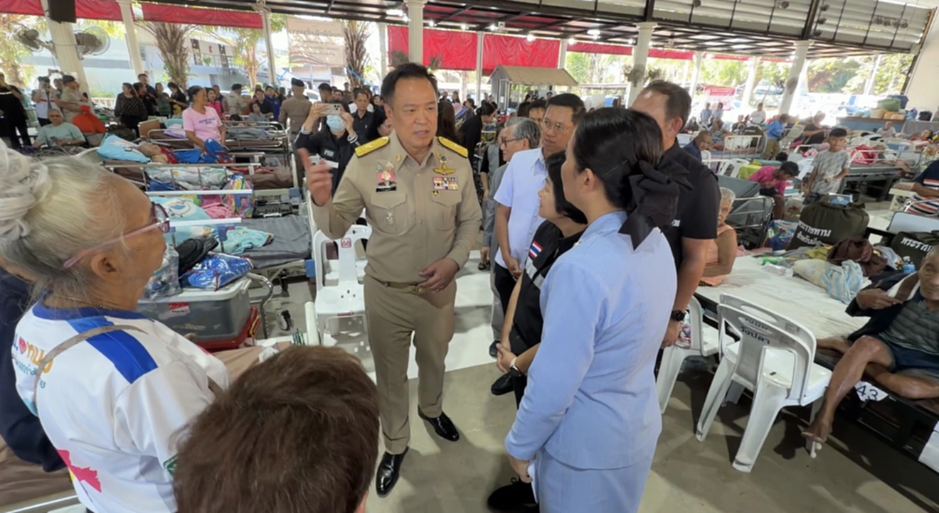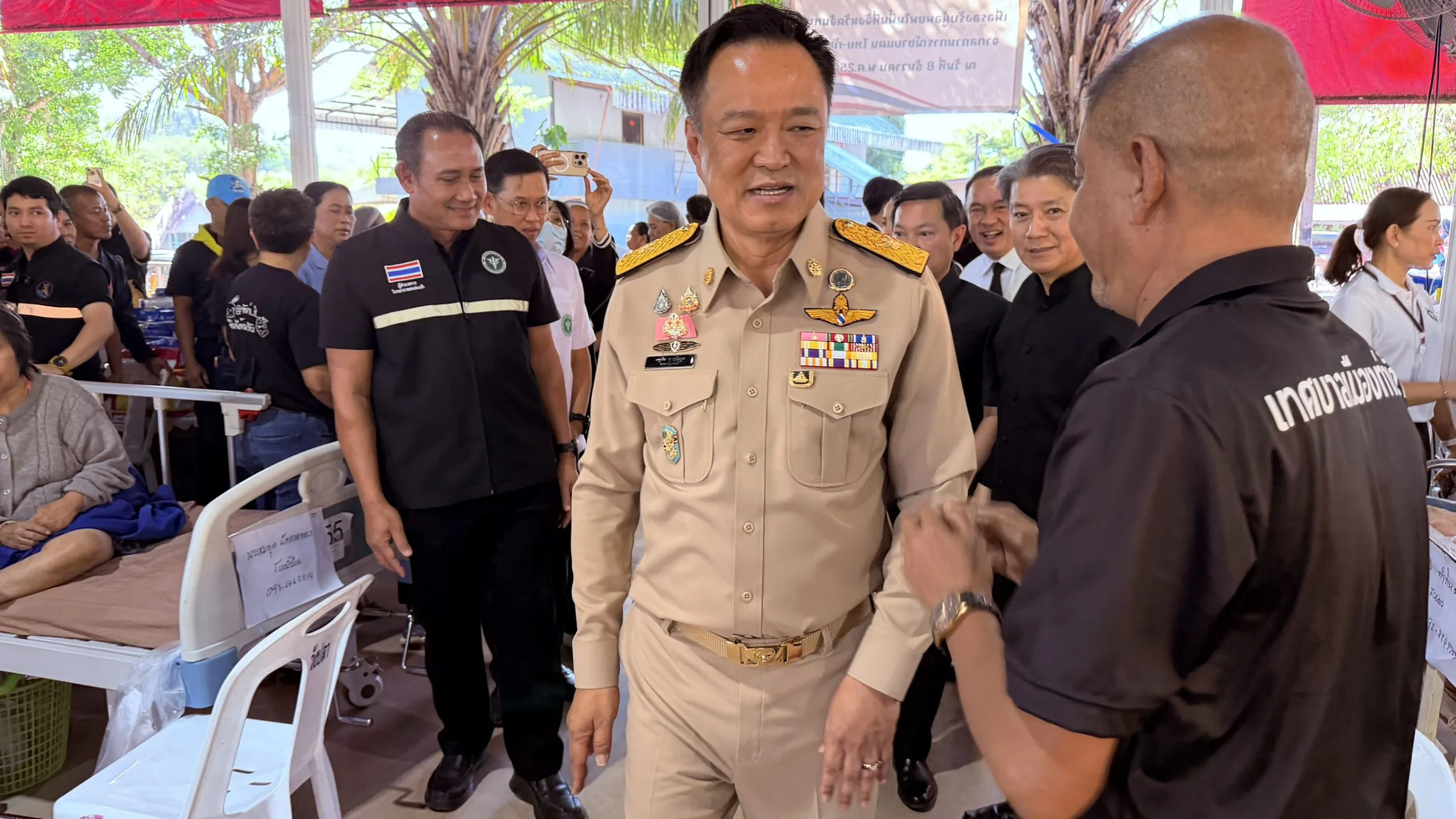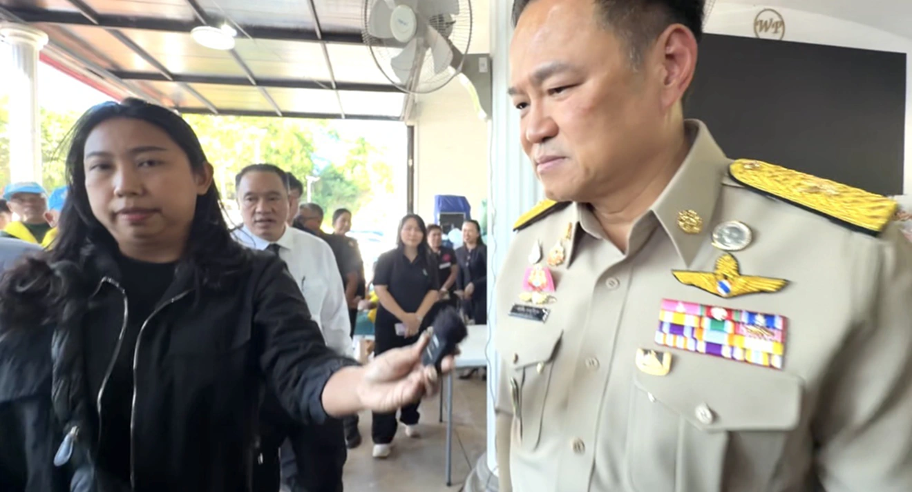 ผู้สื่อข่าวสอบถามเรื่องของสถานการณ์ชายแดน ท่านตอบเพียงสั้นสั้นว่า ในขณะนี้อยู่ระหว่างปฏิบัติการปกป้องอธิปไตยของเราอยู่ ส่วนวันนี้เดินทางมาเยี่ยม ผู้ประสบภัยที่ต้องย้ายออกมาจากพักพิง เพื่อความปลอดภัย โดยเฉพาะสูตรนี้เน้นในเรื่องผู้ป่วยติดเตียง ถ้าหากปล่อยไว้ที่บ้านอาจจะเสี่ยงโดนลูกหลง จากการสู้รบ เมื่อมาอยู่ที่นี่ก็จะปลอดภัย จากนั้นนายกพร้อมคณะรีบเดินทางไปยังสนามบินท่าใหม่ เพื่อเดินทางกลับทันที