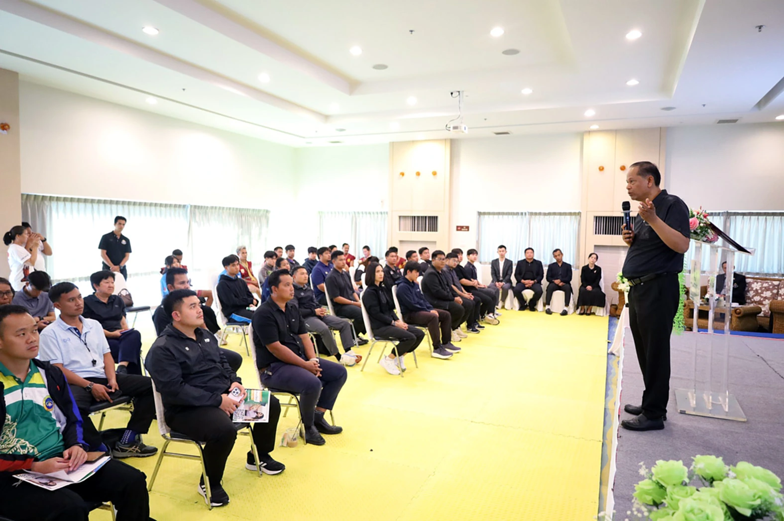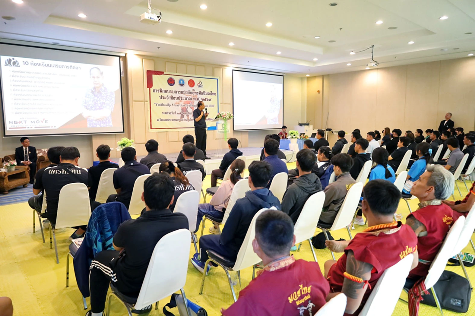 เมื่อวันที่ 17 ธ.ค. 2568 ที่โรงแรมประจวบแกรนด์ อ.เมืองประจวบฯ นายสิทธิชัย สวัสดิ์แสน ผู้ว่าราชการจังหวัดประจวบฯ เป็นประธานเปิดการฝึกอบรมการแข่งขันยุทธศิลป์มวยไทย ‘Yutthasilp Muaythai Prachuapkhirikhan’ ประจำปี 2569 ระหว่างวันที่ 17–18 ธันวาคม 2568 โดยมี ร้อยโทสิทธิชัย ตัณฑสิทธิ์ ท่องเที่ยวและกีฬาจังหวัดประจวบฯ สำนักงานการกีฬาแห่งประเทศไทยจังหวัดประจวบฯ หัวหน้าส่วนราชการ ผู้บริหารสถานศึกษา ครูผู้สอน และผู้แทนหน่วยงานที่เกี่ยวข้องให้การต้อนรับ มีบุคลากรทางการศึกษาเข้ารับการอบรมทั้งสิ้น 60 คน กิจกรรมประกอบด้วยการฝึกทักษะไหว้ครู ท่าไหว้ครูมวยไทย และการฝึกท่าแม่ไม้-ลูกไม้สำหรับการแข่งขันยุทธศิลป์มวยไทย โดยวิทยากรที่ผ่านการอบรม A License ของสำนักงานคณะกรรมการกีฬามวย การกีฬาแห่งประเทศไทย พร้อมมอบประกาศนียบัตรให้กับผู้ผ่านการฝึกอบรม
