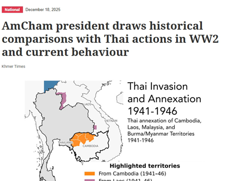 “ในปี 2484 ไทยได้รุกรานกัมพูชา และต่อมาได้ประกาศสงครามกับสหรัฐอเมริกาและสหราชอาณาจักร