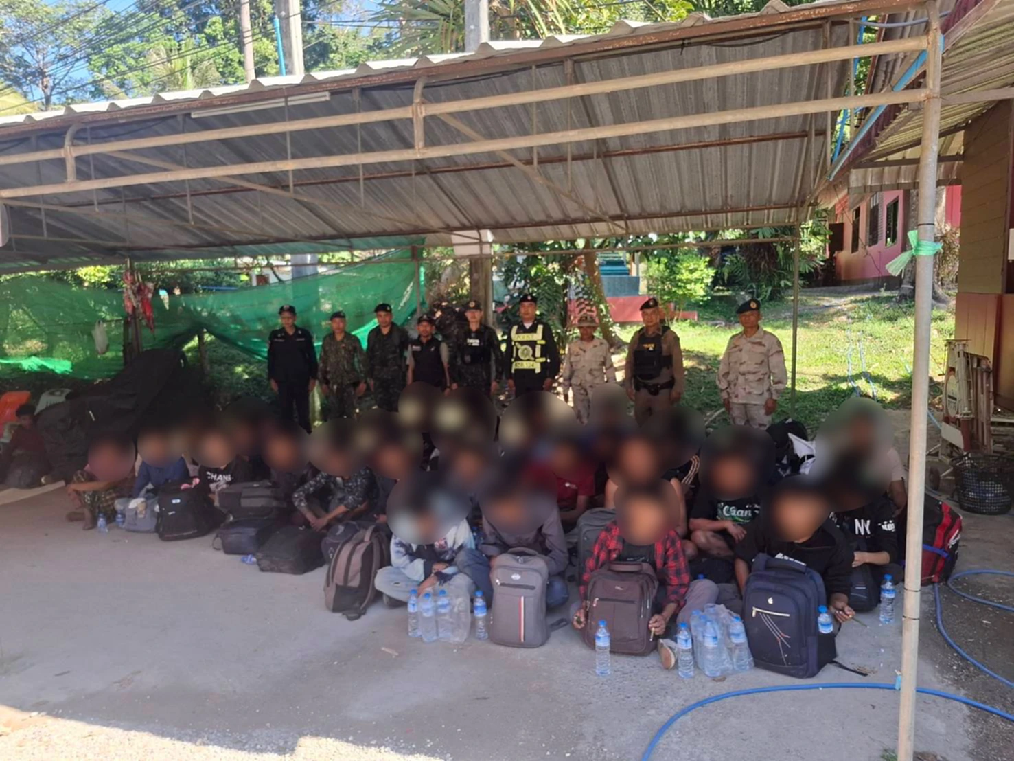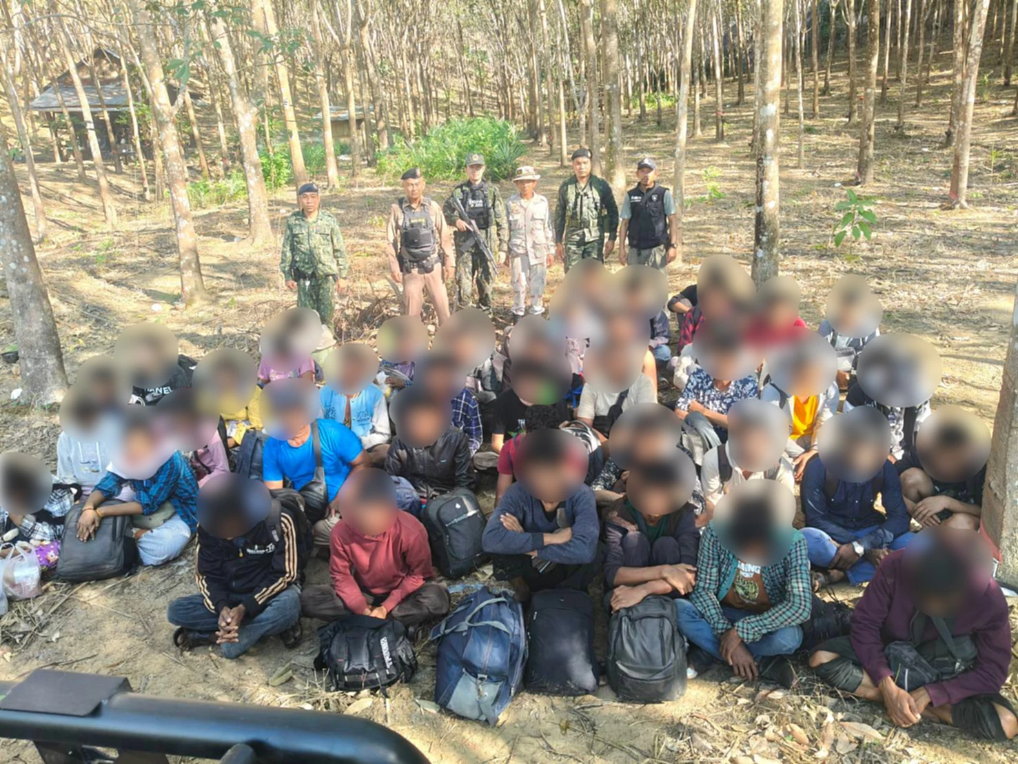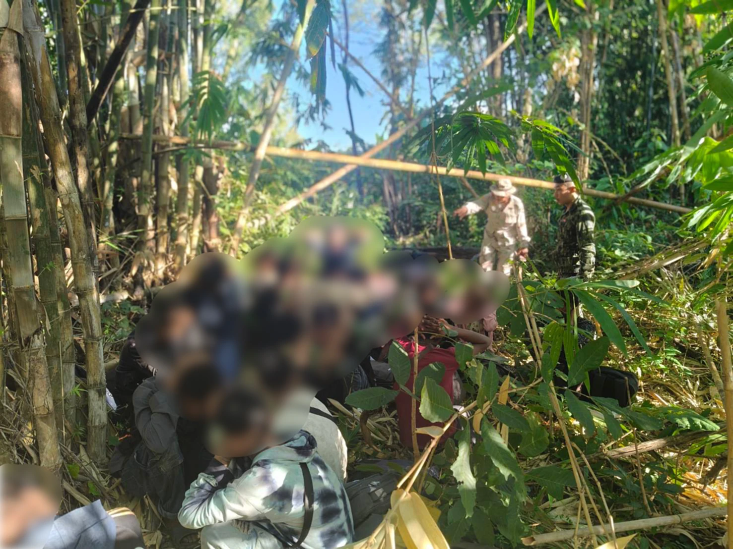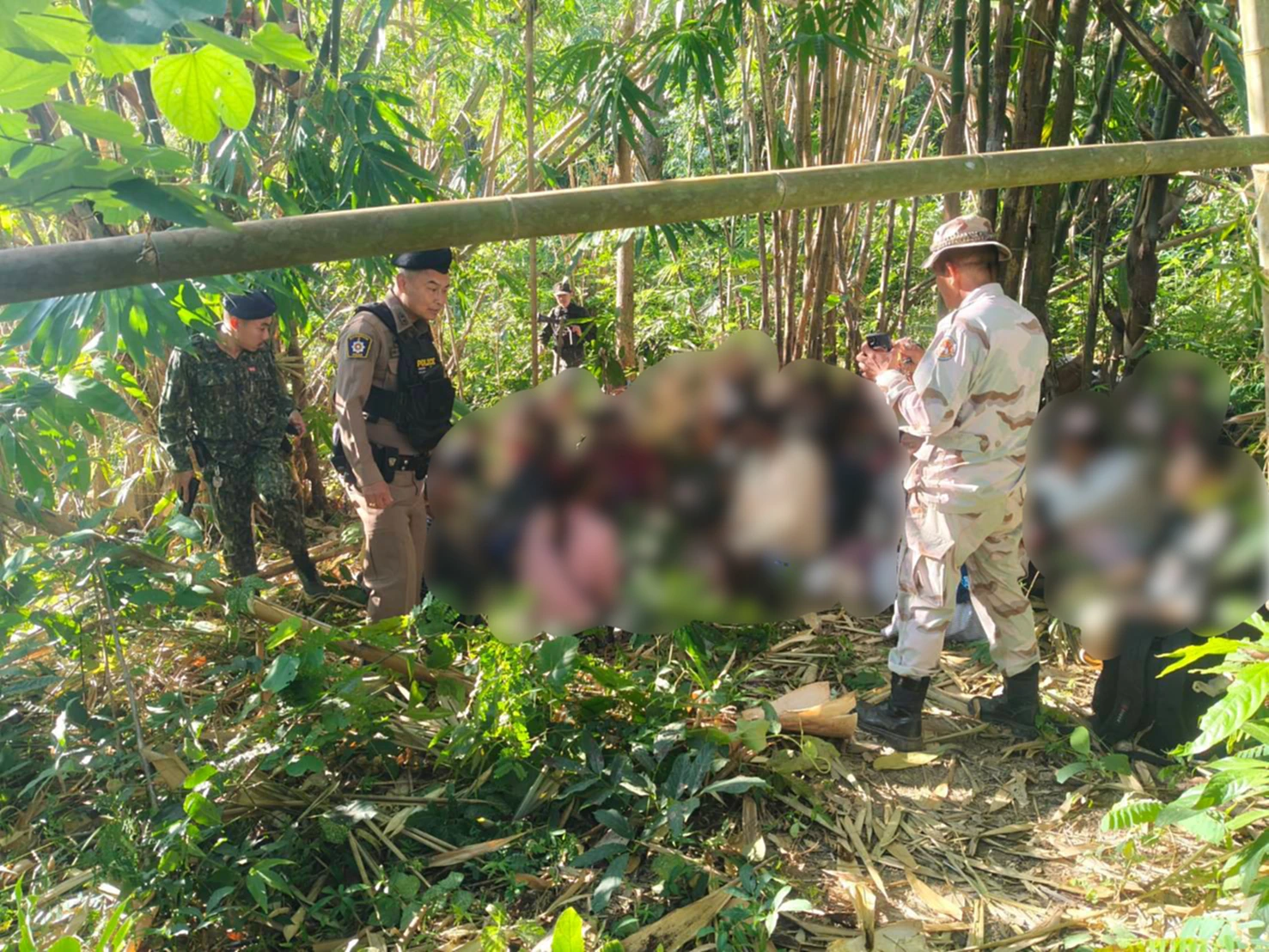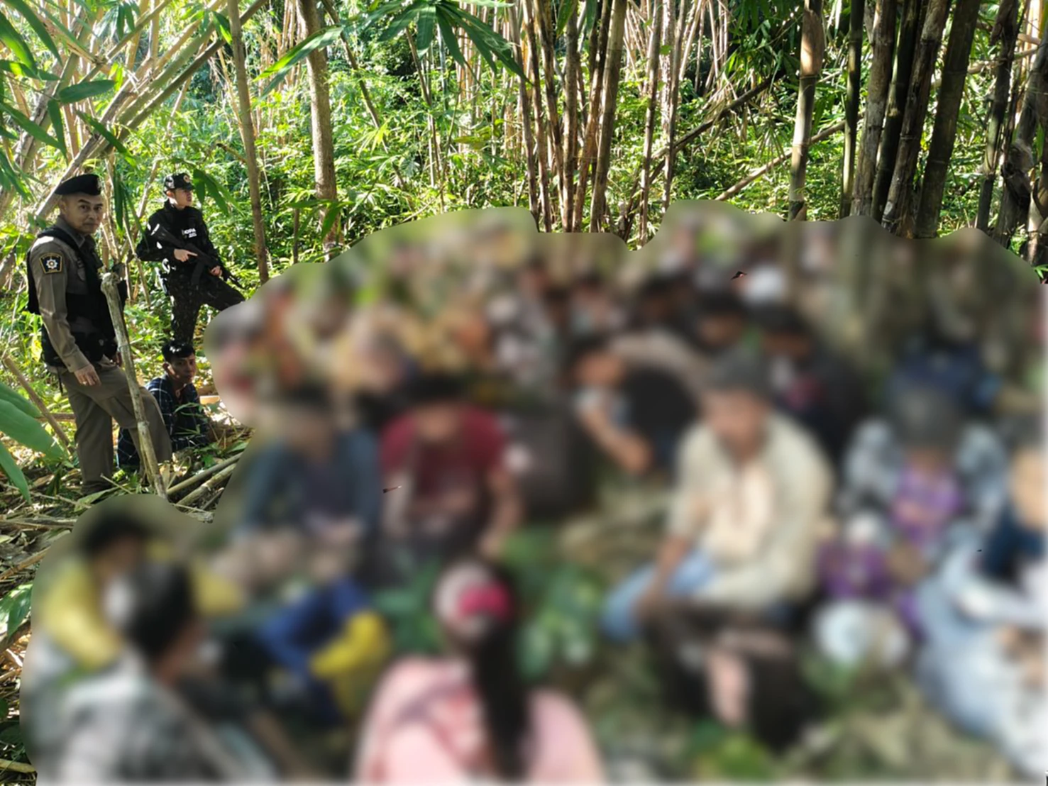 กองกำลังสุรสีห์ สนธิกำลังฝ่ายปกครองและตำรวจ เปิดปฏิบัติการซุ่มสกัดรวบ 43 แรงงานเถื่อนสัญชาติเมียนมา ขณะกบดานชายเขาบ้านยางขาว อ.สังขละบุรี สารภาพจ่ายค่านายหน้าหัวละ 2 หมื่นบาท หวังใช้ไทยเป็นทางผ่านไปทำงานมาเลเซีย สุดท้ายไม่รอดถูกรวบส่งดำเนินคดี ขยายผลล่าตัวการใหญ่ต่อไป