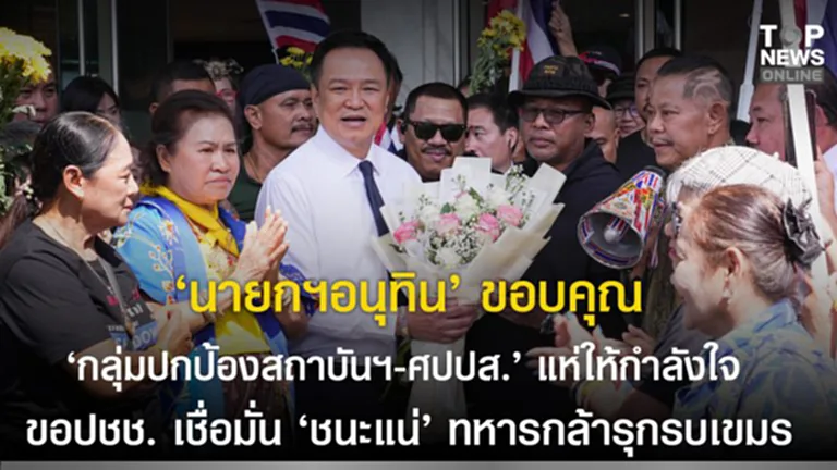 “นายกฯอนุทิน” ขอบคุณ “กลุ่มปกป้องสถาบันฯ-ศปปส.” แห่ให้กำลังใจ มั่นใจ “ชนะแน่” ทหารกล้ารุกรบเขมร ทวงแผ่นดินคืน