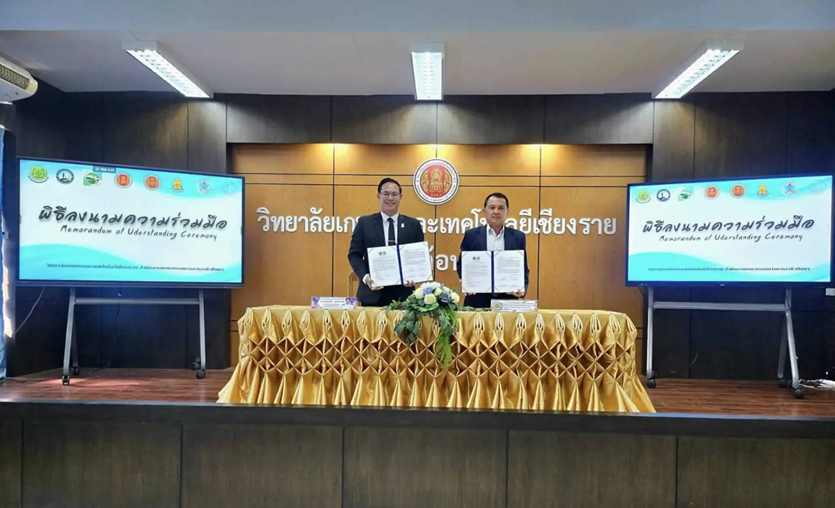 ที่ห้องประชุมอาคารอำนวยการ วิทยาลัยเกษตรและเทคโนโลยีเชียงราย มีพิธีลงนามบันทึกความเข้าใจความร่วมมือ (MOU) ระหว่าง วิทยาลัยเกษตรและเทคโนโลยีเชียงราย กับ สำนักงานสภาเกษตรกรจังหวัดเชียงราย เพื่อยกระดับการพัฒนาเกษตรกรและบุคลากรด้านการเกษตรของจังหวัด