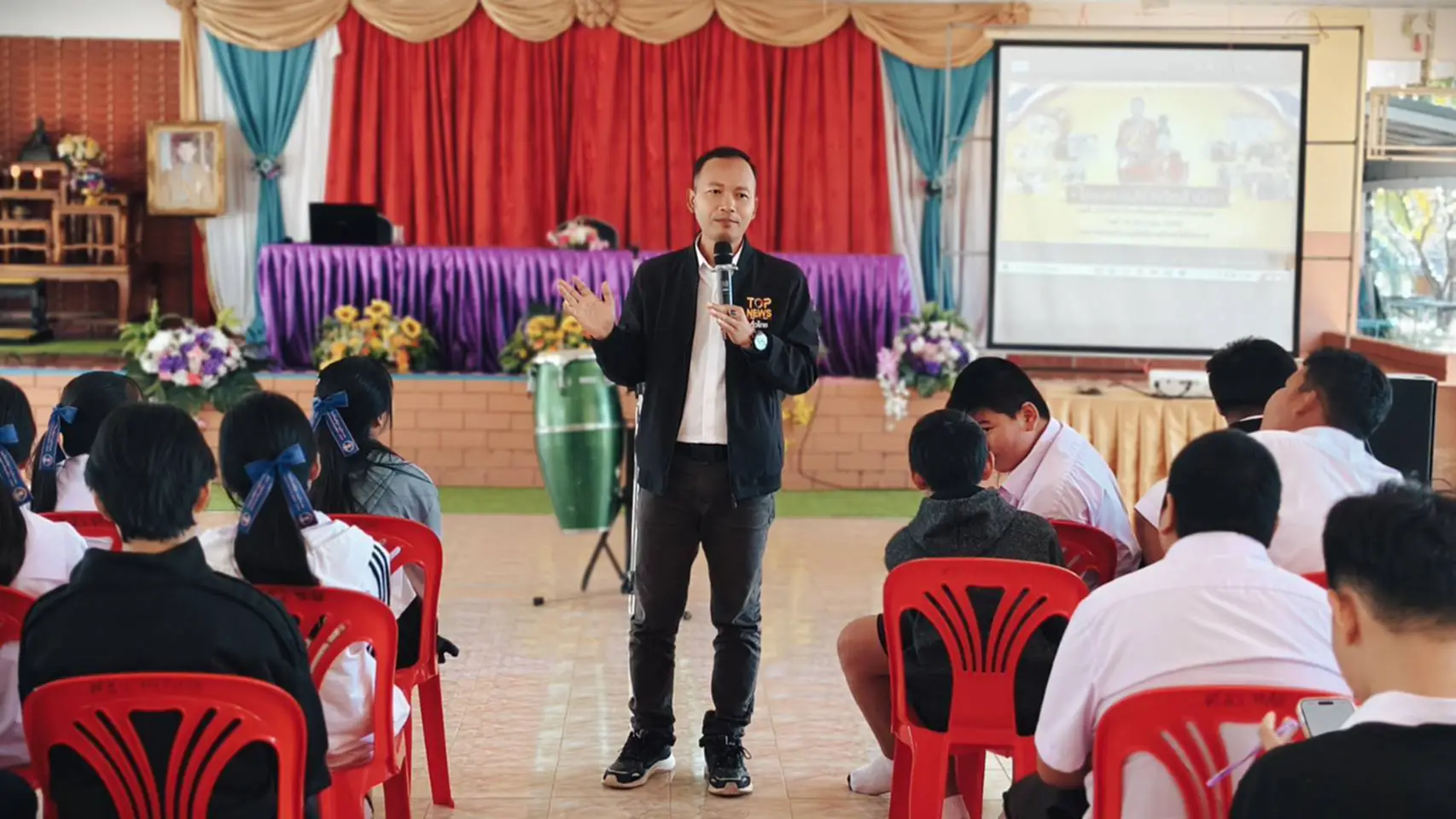 เมื่อวันที่ 19 ธันวาคม 2568 เวลา 09.30 น. ณ หอประชุมโรงเรียนศรีสำราญวิทยาคม อำเภอพรเจริญ จังหวัดบึงกาฬ พ.ต.ท.พิพัฒน์ เจริญเดชธนกิจ สารวัตรหัวหน้าหน่วยตำรวจสันติบาลบึงกาฬ พร้อมเจ้าหน้าที่ในสังกัด ร่วมดำเนินกิจกรรมอบรม โดยมีนักเรียนระดับชั้นมัธยมศึกษาตอนปลาย จำนวน 100 คน เข้าร่วมกิจกรรมอย่างพร้อมเพรียง