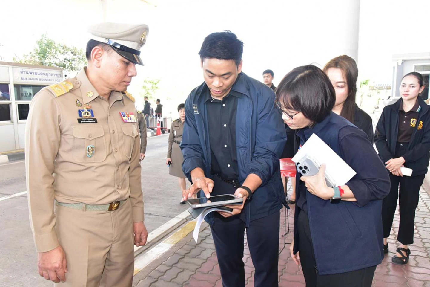 ในการนี้ มี พล.ต.ต.ไพโรจน์ ไทยพุทธา ผู้บังคับการตำรวจภูธรจังหวัดมุกดาหาร พ.ต.อ.ธนิสร แสงท่านั่ง ผู้กำกับการตรวจคนเข้าเมืองจังหวัดมุกดาหาร นางกนกวรรณ สุขศิริ นายด่านศุลกากรมุกดาหาร นายสันทัด รังคพุทธมานะ สรรพสามิตพื้นที่มุกดาหาร พร้อมด้วยหน่วยงานด้านความมั่นคง ฝ่ายปกครอง และสำนักงานประชาสัมพันธ์จังหวัดมุกดาหาร ร่วมติดตามการตรวจสอบในครั้งนี้