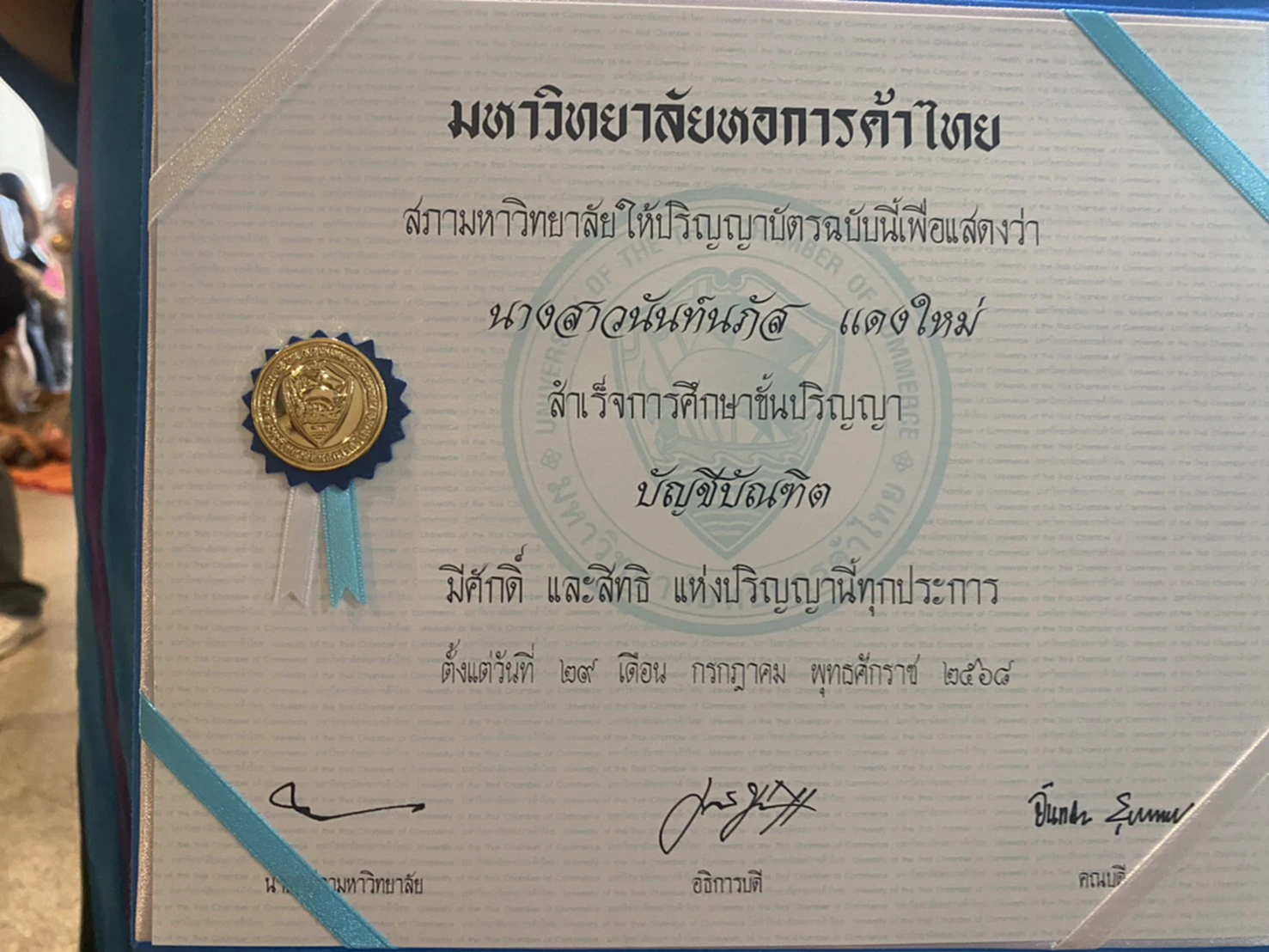 นอกจากนี้ยังมีนายชนะพล คลังรุ่งเรือง ประธานกรรมการสมาคมการค้าไทย-เหลียวหนิง และญาติสนิทมิตรสหายได้มาร่วมแสดงความยินดี พร้อมมอบของขวัญมากมาย ที่สำเร็จการศึกษาในครั้งนี้ ทางด้านนายณพล บริบูรณ์ ยังได้มอบของขวัญเป็นรางวัลพิเศษคือ iPhone 17ให้กับบุตรสาวอีกด้วย