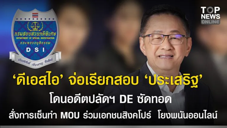 วุ่นแล้วเพื่อไทย! "ดีเอสไอ" จ่อเรียกสอบ "ประเสริฐ" เลขาธิการพรรค โดนอดีตปลัดฯ DE ซัดทอดสั่งการเซ็นเห็นชอบ ทำ MOU ร่วมเอกชนสิงคโปร์ ผุดโปรเจคศูนย์ธุรกิจดิจิทัล โยงพนันออนไลน์