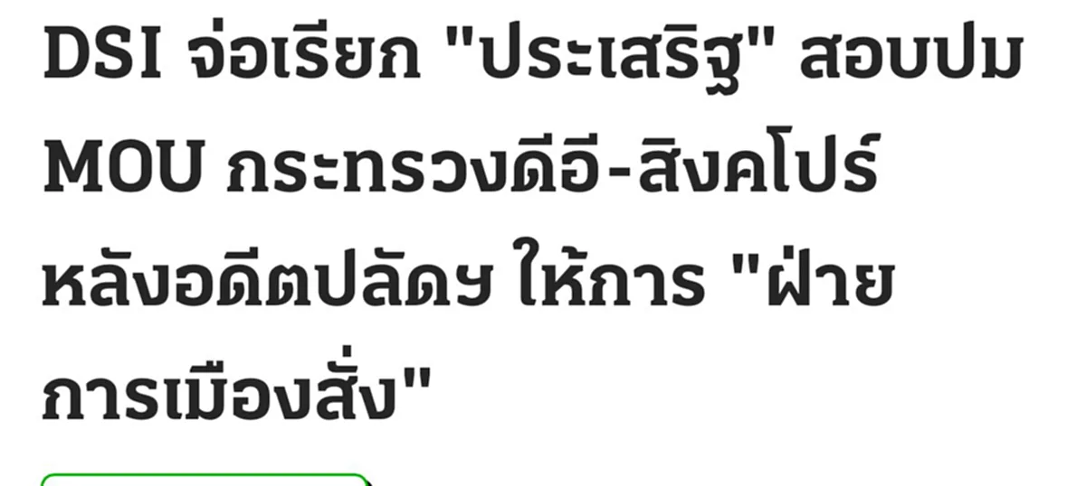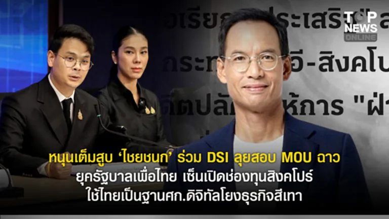 “กรณ์” หนุนเต็มสูบ “ไชยชนก” ร่วมดีเอสไอ ลุยสอบ MOU ฉาว ยุครัฐบาลเพื่อไทย เซ็นเปิดช่องทุนสิงคโปร์ ใช้ไทยเป็นฐานศก.ดิจิทัลโยงธุรกิจสีเทา ชี้อดีตปลัด DE โยนการเมืองสั่งเข้าข่ายร่วมผิดด้วย – Top News รายงาน