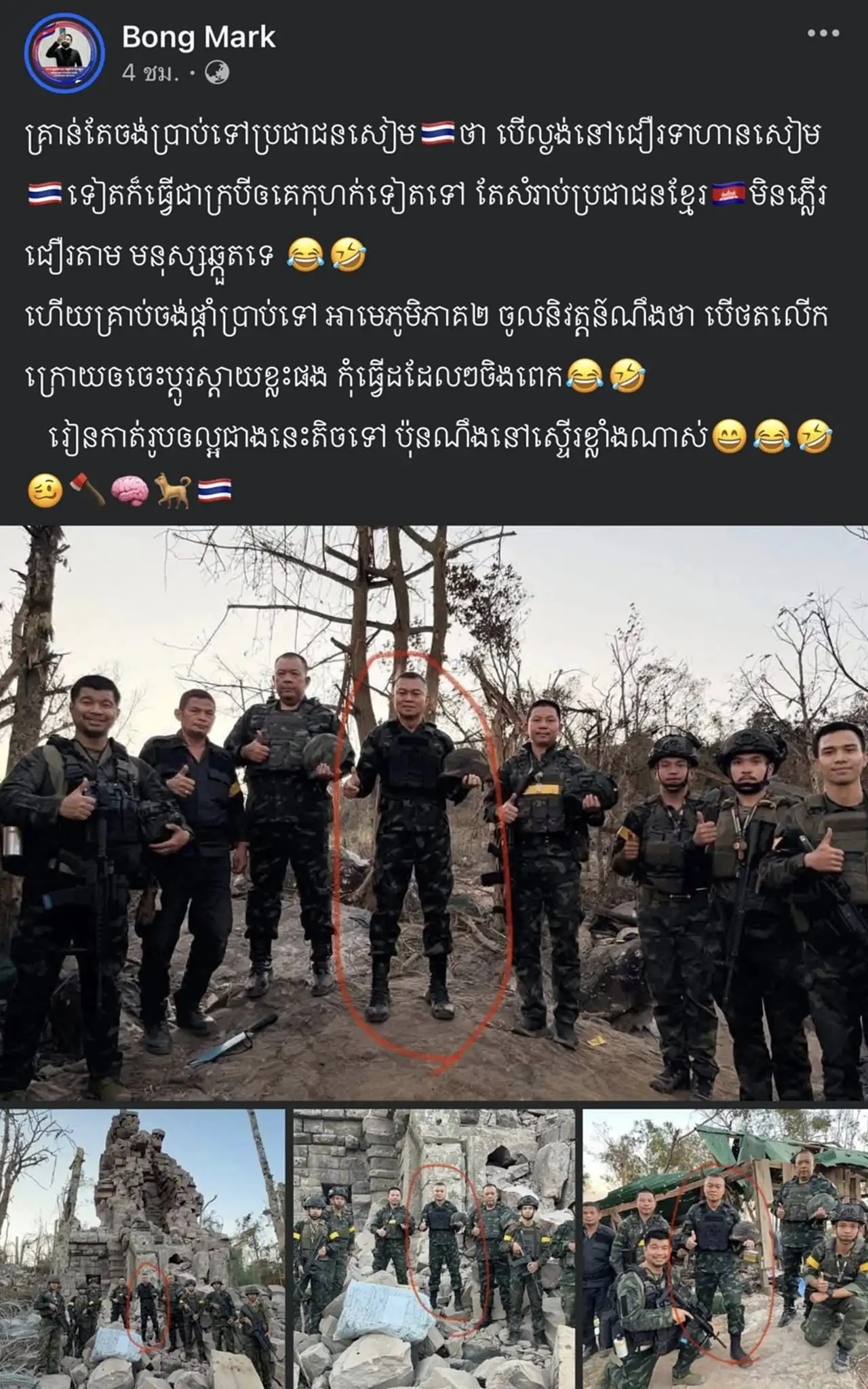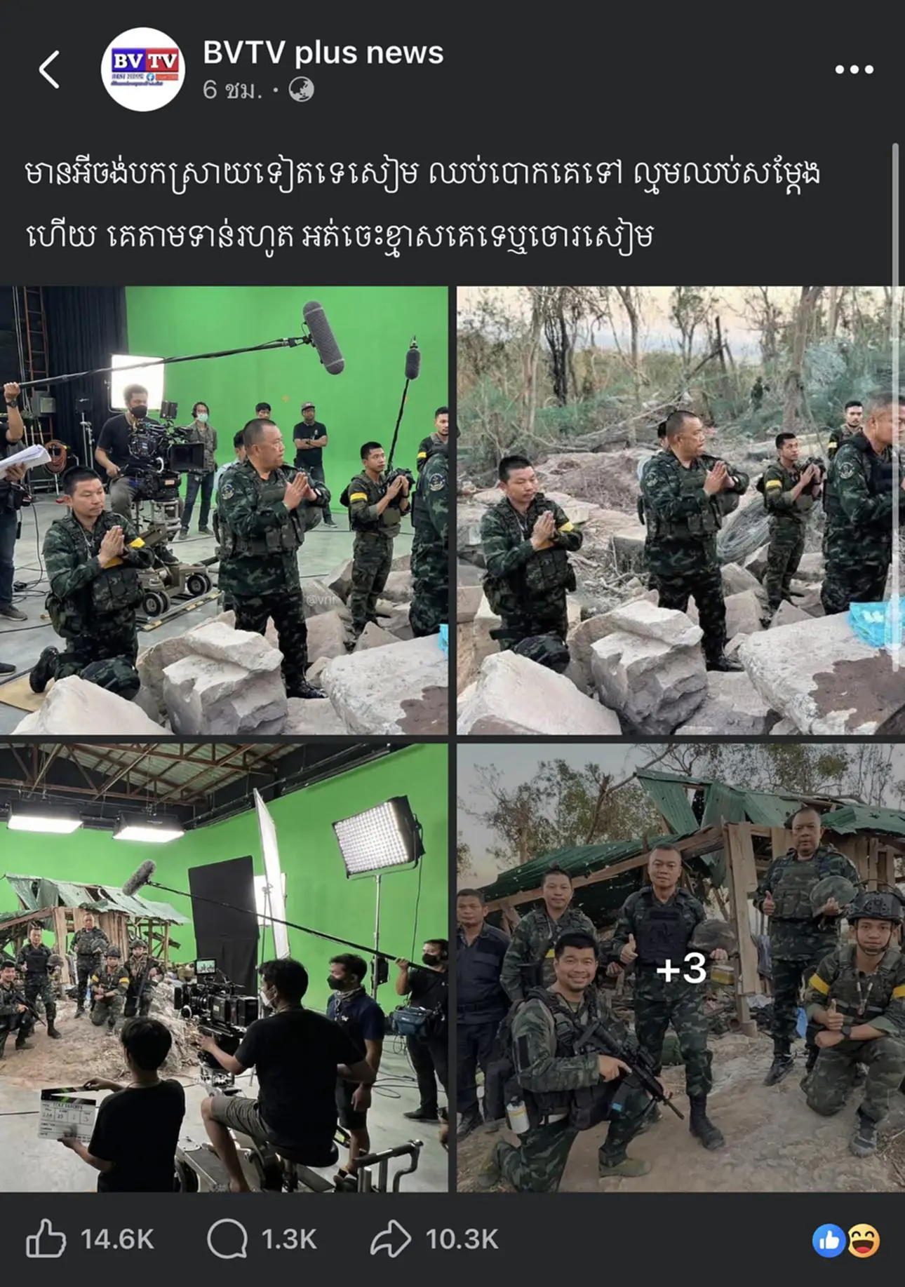 ทั้งนี้ยังพบว่า สื่อกัมพูชาอย่าง BVTV นำรูปบิดเบือนดังกล่าวไปโพสต์ต่อ พร้อมลงแคปชั่นว่า “ยังมีอะไรจะมาแก้ตัวอีกไหมสยาม เลิกหลอกคนอื่นได้แล้ว พอเถอะ หยุดแสดงได้แล้ว เขาจับได้กันหมดแล้ว ไม่รู้จักอายคนอื่นบ้างหรือไง พวกโจรสยาม”