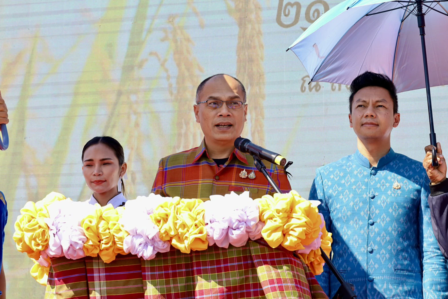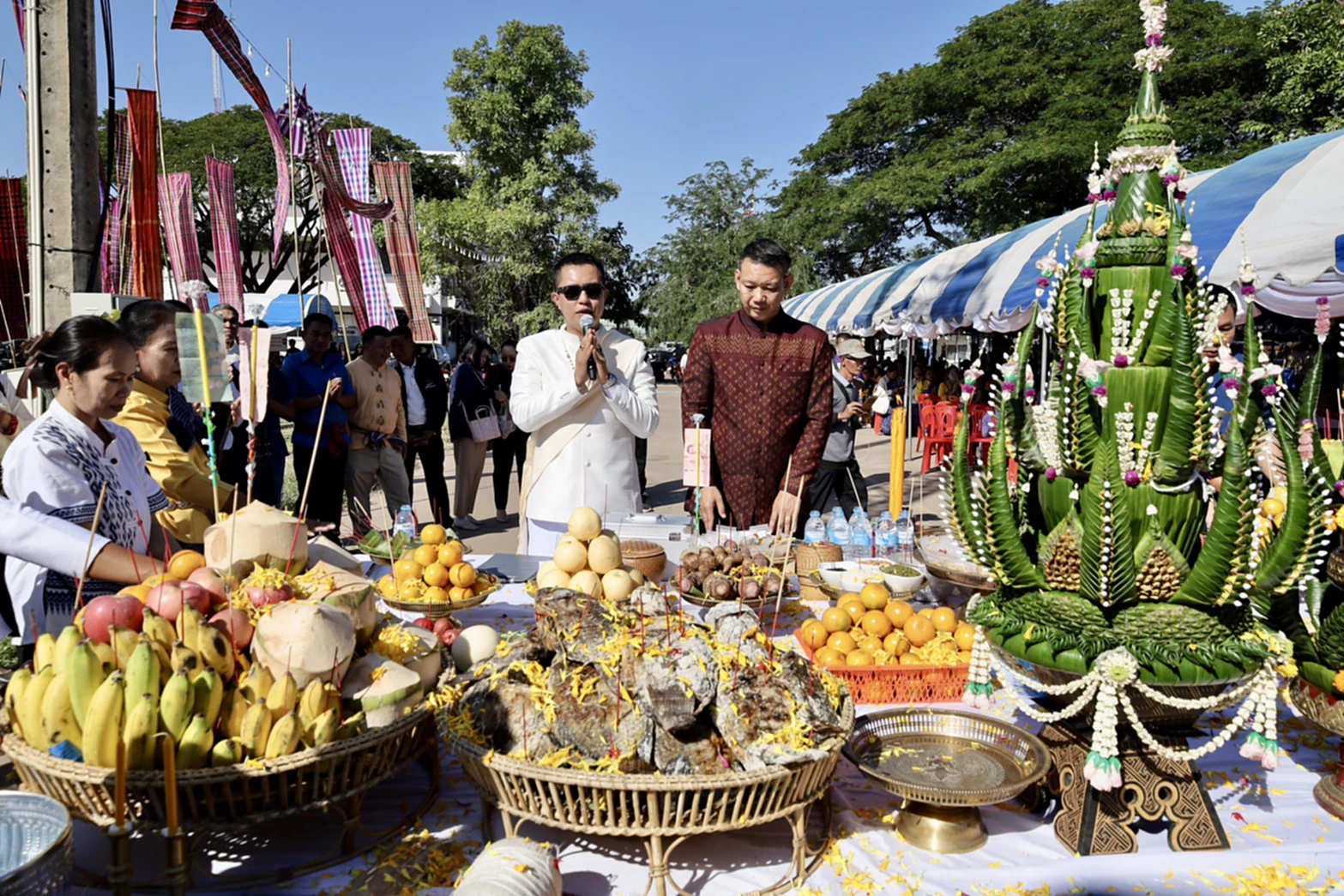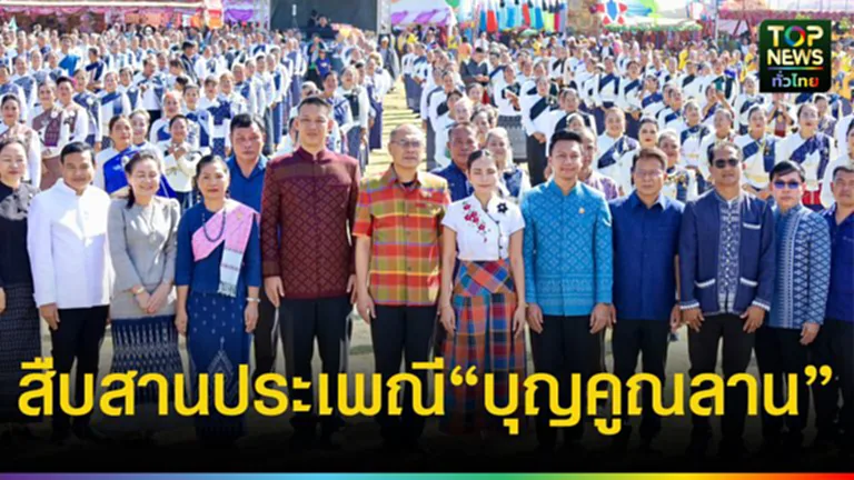 วันนี้ (21 ธ.ค. 68) เวลา 10.00 น. ที่บริเวณสนามกีฬากลาง ที่ว่าการอำเภอกันทรวิชัย จังหวัดมหาสารคาม นายกองเอก เสนีย์ มะโน รองผู้ว่าราชการจังหวัดมหาสารคาม เป็นประธาน เปิดงานประเพณีบุญคูณลานและงานของดีอำเภอกันทรวิชัย ประจำปี 2568 โดยมี นายสมพร ควรคำคง นายอำเภอกันทรวิชัย ผู้บริหารองค์กรปกครองส่วนท้องถิ่น ผู้นำท้องที่ และประชาชนชาวอำเภอกันทรวิชัย เข้าร่วมงานจำนวนมาก