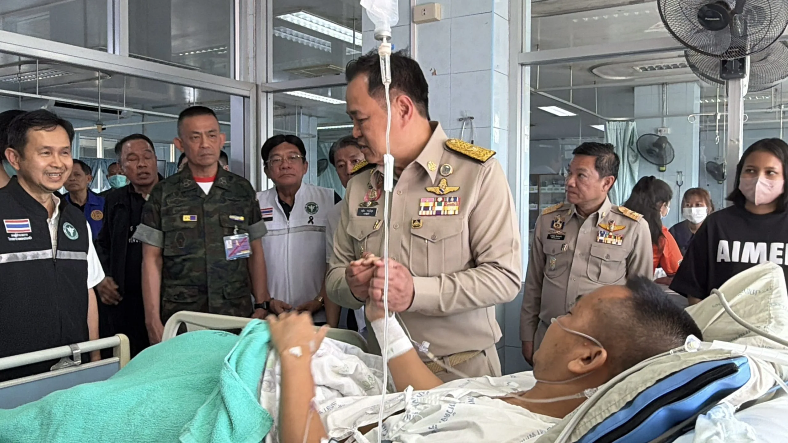 นายอนุทิน ชาญวีรกูล รักษาการ นายกรัฐมนตรี เดินทางเข้ามาถึงก็โผเข้าไปจับหน้าอกของ จ.อ.เทอดพงษ์ ผู้บาดเจ็บทันทีพร้อมพูดให้กำลังใจ หลังจากทราบว่าผู้ได้รับบาดเจ็บเป็นคนบุรีรัมย์ นายกถึงกับร้องเสียงดัง “ อ้าวคนบุรีบุรีรัมย์ เดี๋ยวอุ้มไปเอง ” โดยหลังจากหายดีแล้วจะให้เดินทางไปรักษาตัวที่จังหวัดบุรีรัมย์ ซึ่งเป็นบ้านเกิด โดยท่านอนุทิน ได้พูดคุยเป็นกันเองพร้อมกับช่วยดูสกอร์วัดความดัน พร้อมแนะนำแพทย์ว่าต้องทำให้ความดันลดลงกว่านี้