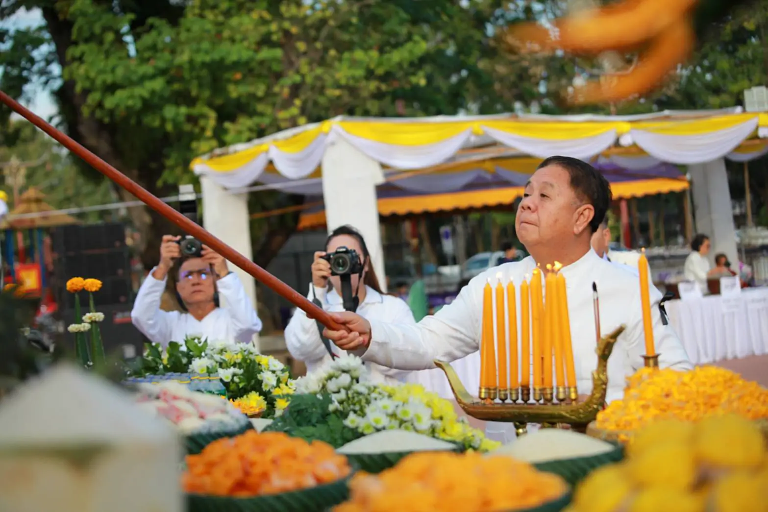 ในโอกาสนี้ ผู้ว่าราชการจังหวัดน่านและผู้มีเกียรติได้ร่วมถวายภัตตาหารและจตุปัจจัยไทยธรรมแด่พระสงฆ์ ก่อนที่พระสงฆ์จะอนุโมทนา ประพรมน้ำพระพุทธมนต์ และให้พรแก่ผู้เข้าร่วมพิธี