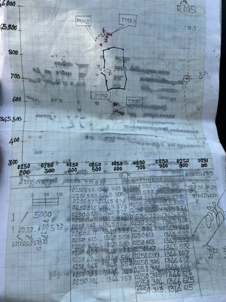 ภายหลังจากกองบัญชาการป้องกันชายแดนจันทบุรีและตราด (กปช.จต.) ได้เข้าควบคุมและตรวจสอบพื้นที่บ้านหนองรี และบ้านท่าเส้น ตำบลชำราก อำเภอเมือง จังหวัดตราด ซึ่งเป็นพื้นที่ที่ฝ่ายกัมพูชาเคยเข้ายึดครองและใช้เป็นฐานที่มั่นทางทหาร ได้ตรวจพบวัตถุพยานจำนวนมากที่ไม่อาจปฏิเสธได้ อันแสดงถึงการวางแผนและการกระทำโดยเจตนาในการใช้ทุ่นระเบิดสังหารบุคคล ได้แก่ การตรวจพบ แผนผังแสดงตำแหน่งการฝังทุ่นระเบิดสังหารบุคคลและทุ่นระเบิดดัดแปลง ในพื้นที่บ้านหนองรี ซึ่งสะท้อนถึงการเตรียมการล่วงหน้าเพื่อประสงค์ต่อชีวิตทหารไทย
