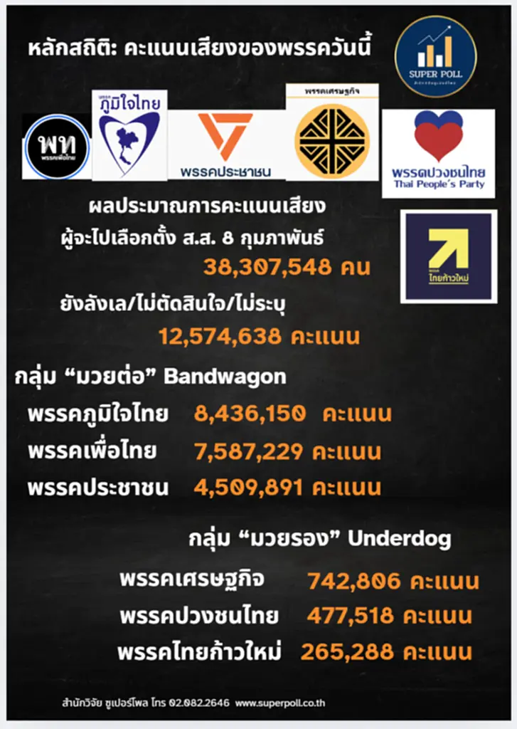 โพลสะท้อนเกมยังไม่ปิด ภท.นำ ขณะ "ปวงชนไทย" โผล่กลุ่มมวยรอง