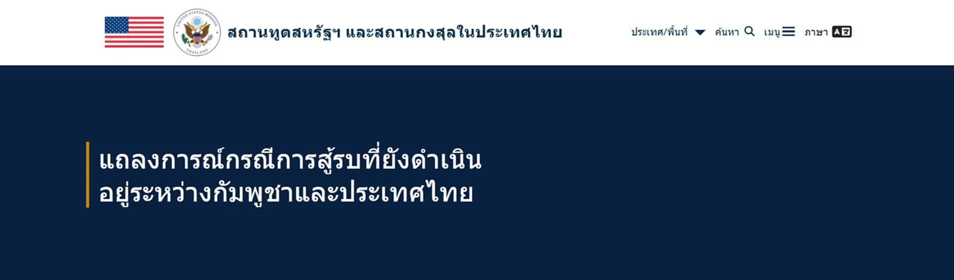 "สถานทูตสหรัฐฯ" ออกแถลงการณ์ เรียกร้องไทย-กัมพูชา ยุติสู้รบ เพิ่มเงื่อนไข หยุดวาง-เร่งกู้กับระเบิด ตามข้อตกลงสันติภาพ