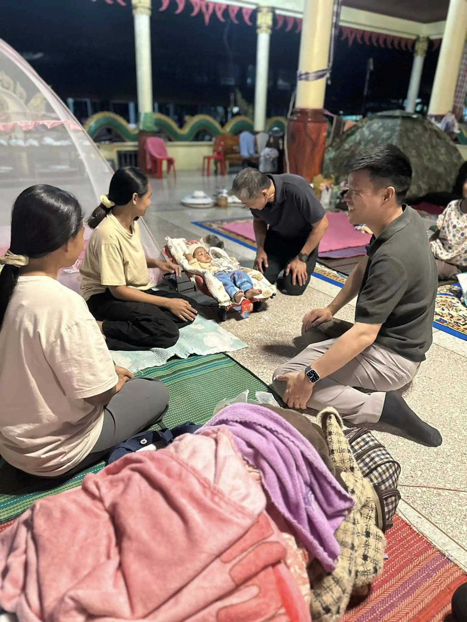 โดยใน 3 ศูนย์อพยพที่ผมเดินทางไปวันนี้ มีจำนวนผู้อพยพรวมกันกว่า 800 คน พี่น้องจำนวนหนึ่งที่ผมได้พูดคุย สะท้อนว่าแม้จะได้รับการเยียวยาบางส่วนจากรัฐบาล และได้รับการดูแลอย่างดีจากศูนย์อพยพ การกินอยู่ไม่ลำบาก แต่พวกเขาก็ยังรู้สึก ‘ล้า’ เพราะต้องอยู่ศูนย์อพยพมาเป็นระยะเวลานาน และมีความเป็นห่วง ต้องทิ้งสวนไร่นาและสัตว์เลี้ยงมาแล้วเกือบ 2 สัปดาห์ ขาดรายได้ จึงอยากกลับสู่ภาวะปกติ เพื่อจะได้สามารถดำเนินชีวิตและประกอบอาชีพการงานตามแต่เดิม เพื่อให้มีเงินมาหล่อเลี้ยงและใช้หนี้ วันนี้ ทุกคนพูดเป็นเสียงเดียวกันว่า “อยากกลับบ้าน”
