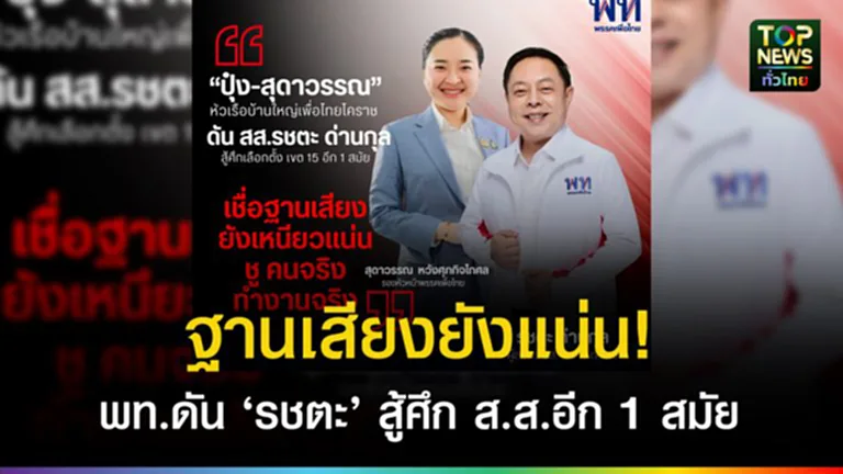 วันนี้ (22 ธันวาคม 2568) ผู้สื่อข่าวรายงานว่า น.ส.สุดาวรรณ หวังศุภกิจโกศล รองหัวหน้าพรรคเพื่อไทย หัวเรือบ้านใหญ่โคราช ดัน “รชตะ ด่านกุล” ปักธงฐานเดิมโคราช เขต 15 “ตัวเล็ก ใจใหญ่ ใกล้ชิดประชาชน”