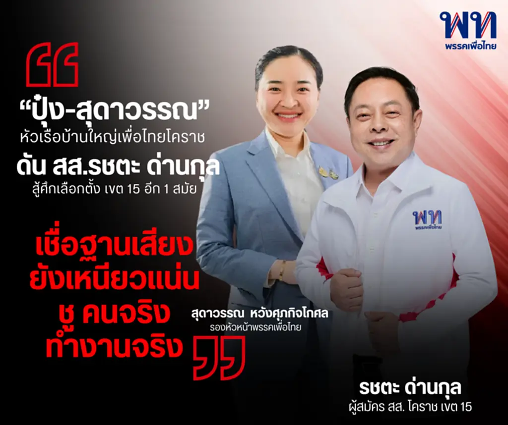 นายรชตะ ด่านกุล อดีตสมาชิกสภาผู้แทนราษฎร จ.นครราชสีมา เขต 15 กล่าวว่า ในระยะเวลาการทำหน้าที่ ส.ส.นครราชสีมา เขต 15 (อ.เทพารักษ์ อ.ด่านขุนทด และ อ.พระทองคำ (เฉพาะ ต.มาบกราด, ต.ทัพรั้ง) ตนได้หยิบยกนโยบายพรรคเพื่อไทยที่ต้องการแก้ไขปัญหาเรื่องปากท้องของพี่น้องประชาชน นโยบายไหนที่ตรงกับบริบทของพื้นที่ก็จะทำได้อย่างรวดเร็ว เพราะเรารู้ปัญหาจึงสามารถแก้ไขได้อย่างตรงจุด ตรงใจประชาขน ไม่ว่าจะเป็นเรื่องโครงสร้างพื้นฐาน ถนน น้ำ ก็ได้ผลักดันโครงการใหญ่ๆ เข้าสู่สภาผ่านไปยังหน่วยงานที่รับผิดชอบ ให้เร่งดำเนินการแก้ไขปัญหาอย่างเร่งด่วน ซึ่งก็ได้ทำสำเร็จไปในหลายๆ โครงการ แต่ก็ยังมีอีกหลายโครงการที่ยังคงต้องสานต่อเพื่อให้เกิดเป็นรูปธรรม ฉะนั้นในการเลือกตั้งครั้งนี้ ตนมีความหวังว่าพี่น้องจะยังไว้ใจ และให้โอกาสตนได้กลับมาทำหน้าที่ ส.ส. ของพี่น้องประชาชนอีกครั้ง เพื่อทำให้นโยบายต่างๆ ที่พรรคเพื่อไทยมุ่งหวังจะแก้ปัญหาให้กับพี่น้อง ให้เป็นจริงได้ และตนก็เชื่อว่า “เพื่อไทย ทำได้”.