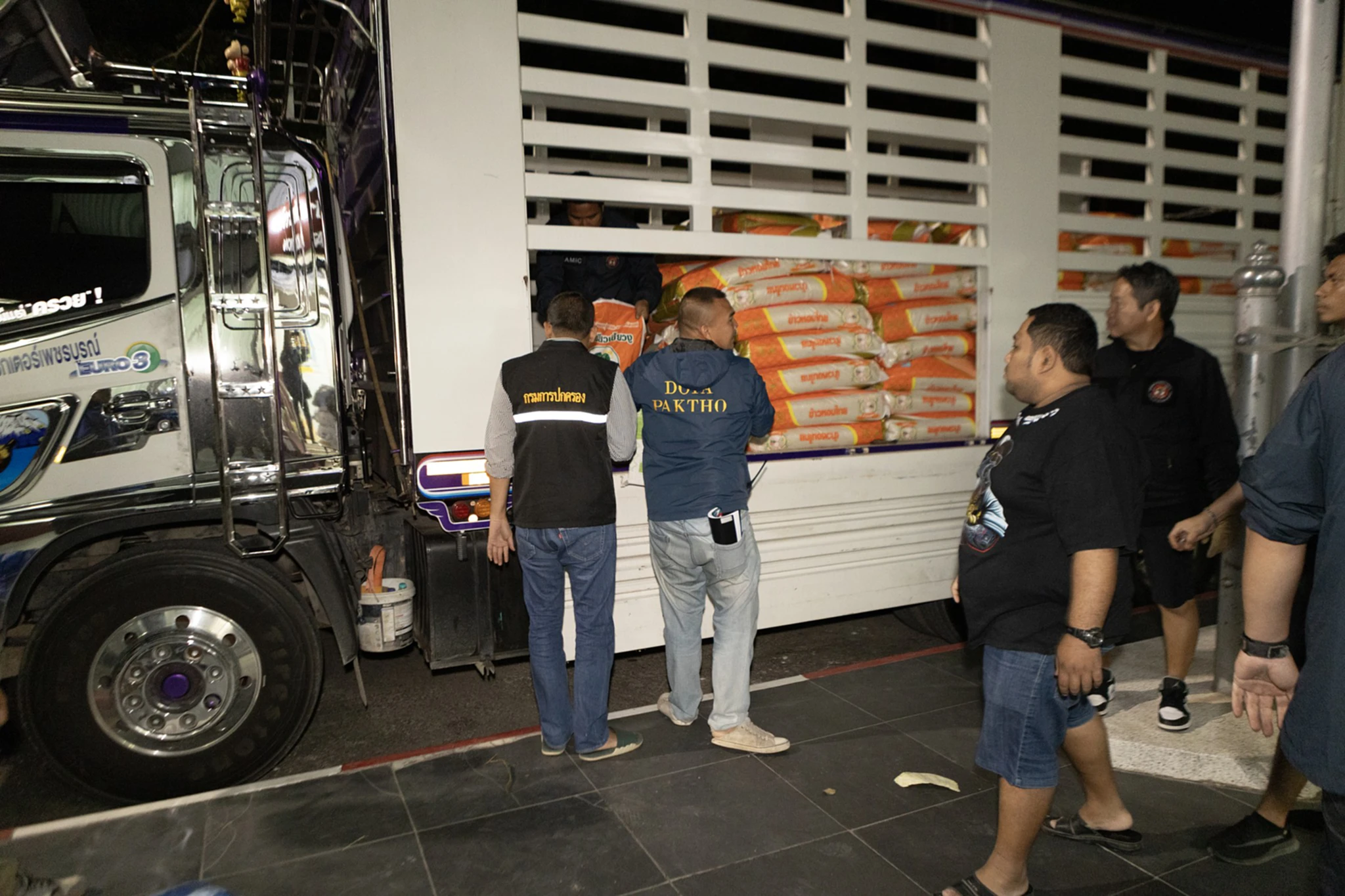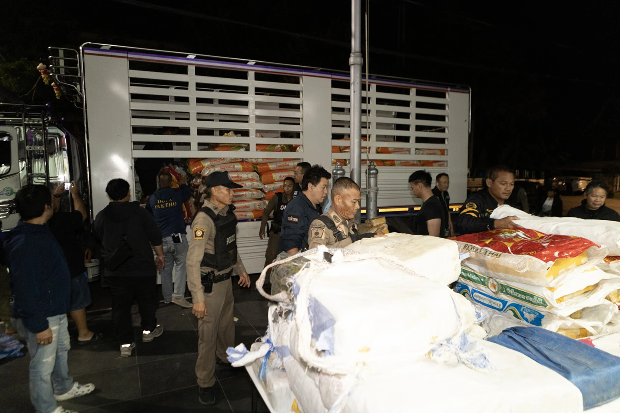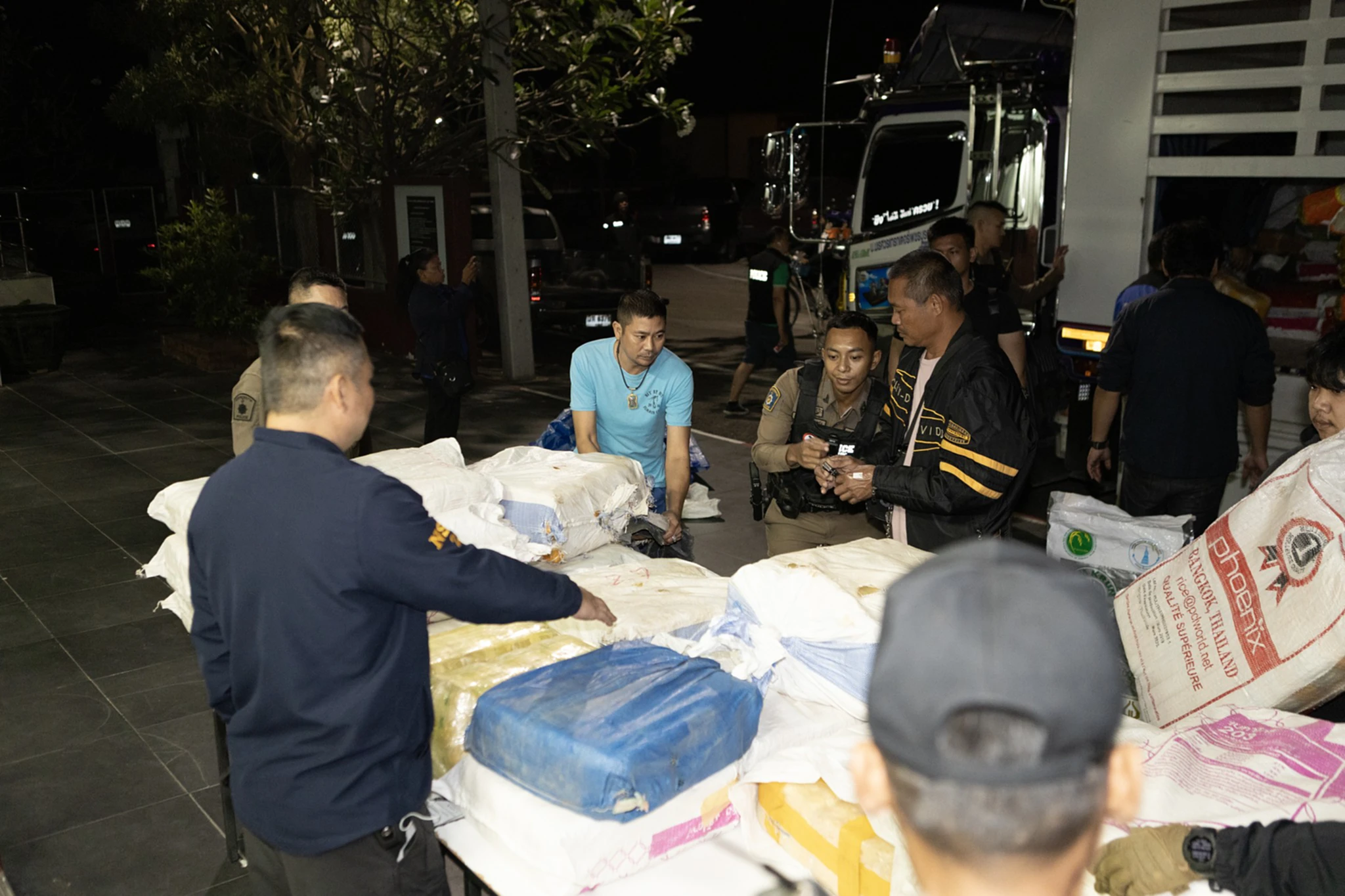 วันที่ 22 ธ.ค.68 พล.ต.ต.ปรัชญา ทองน้ำวน ผบก.ภ.จ.ราชบุรี ได้รับการประสานจากพ.ต.อ.ไพฑูรย์ งามลาภ ผู้กำกับการ 1 กองบัญชาการตำรวจสอบสวนกลาง ว่าขอกำลังเจ้าหน้าที่ตำรวจของสภ.ปากท่อไปช่วยจับกุมพ่อค้ายาที่บริเวณริมถนน บ้านหนองเขาถ่าน ม.5 ต.ดอนทราย อ.ปากท่อ จ.ราชบุรี จึงสั่งการให้ พ.ต.อ. อำนวย เด่นเวหา ผกก สภ.ปากท่อ นำกำลังเจ้าหน้าที่ ไปร่วมตรวจสอบพร้อมกับ พ.ต.อ.ธนบูรณ์ ธัชศฤคารสกุล ผกก.พิสูจน์หลักฐานจ.ราชบุรี ในที่เกิดเหตุพบรถรถบรรทุก 10 ล้อ ยี่ห้อฮีโน่ สีขาว หมายเลขทะเบียน 70- 8152 สุพรรณบุรี ด้านหลังกระบะรถมีข้าวสารมากกว่า 100 กระสอบ วางตบตาเจ้าหน้าที่