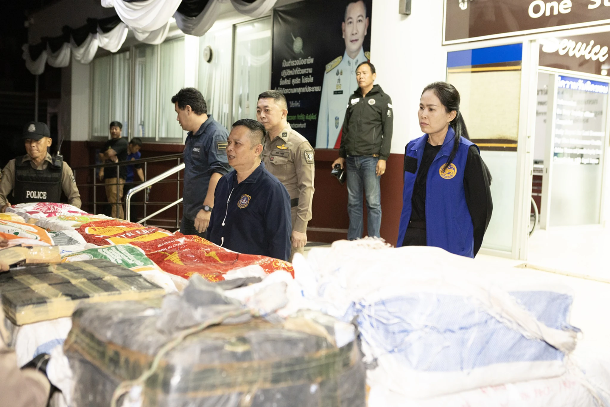 ตรวจสอบด้านในพบกระสอบบรรจุยาบ้า และเฮโลอีนจำนวนมากซุกซ่อนอยู่ โดยพบผู้ที่นั่งมาในรถบรรทุก 10 ล้อ จำนวน 1 คน ทราบชื่อต่อมาคือ นายสุวรรณ (ขอสงวนนามสกุล)