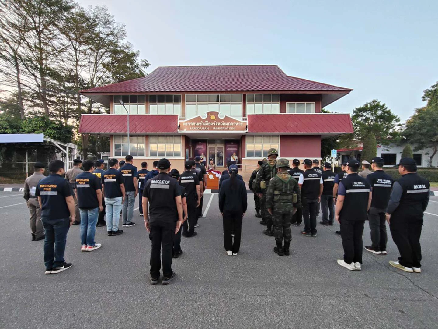 วันที่ 20 ธ.ค. 2568 เวลาประมาณ 06.00 น. ภายใต้อำนวยการสั่งการของ พล.ต.ท.ภาณุมาศ บุญญลักษม์ ผบช.สตม.,พล.ต.ต.ไพรัช พุกเจริญ ผบก.ตม.4, พ.ต.อ. กฤษฎากรณ์ กลิ่นเกษร รอง ผบก.ตม.4 นำโดย พ.ต.อ.ธนิสร แสงท่านั่ง ผกก.ตม.จว.มุกดาหาร, พ.ต.ท.จตุพล ยันต์นาวา รอง ผกก.ตม.จว.มุกดาหาร และ พ.ต.ต.หญิง กัญสุชญา จีรพุทธางกูร สว.ตม.จว.มุกดาหาร พร้อมด้วยเจ้าหน้าที่ชุดสืบสวนฯ ตม.จว.มุกดาหาร บุรณาการร่วมกับ กอ.รมน.จังหวัดมุกดาหาร, ภ.จว.มุกดาหาร, สภ.เมืองมุกดาดาหาร, ตำรวจน้ำ, ตชด.234, ตำรวจท่องเที่ยว, กองกำลังสุรศักดิ์มนตรี, กองร้อยทหารพราน และ จัดหางานจังหวัดมุกดาหาร