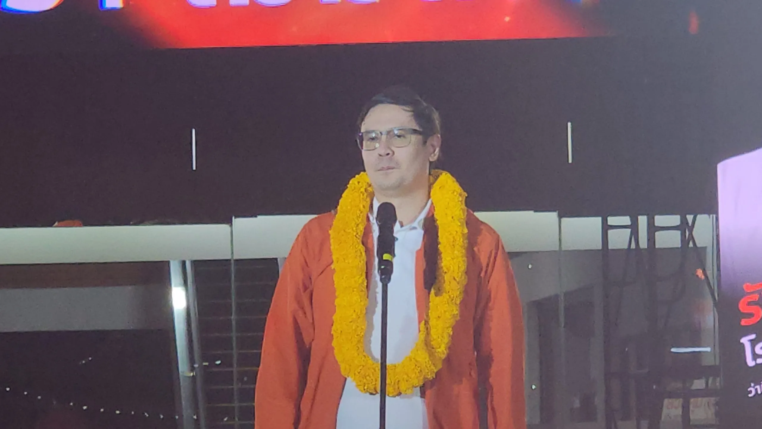 นายรังสิมันต์ กล่าวว่า เคยมาปราศัยที่นี่ครั้งที่แล้ว พรรค ปชน.แลนสไลด์มาแล้ว ครั้งนี้ก็อยากให้เกิดขึ้นอีก และการเลือกตั้งครั้งนี้ จึงเป็นการเดิมพันประเทศ ช่วยกันคนละเสียง ช่วยสกัดทุนเทา นักการเมืองสีเทา ที่ยุ่งเกี่ยวกับแก๊งสแกมเมอร์ วันที่ 8 ก.พ.69 นี้ เอาพรรค ปชน.ไปปราบทุนเทา