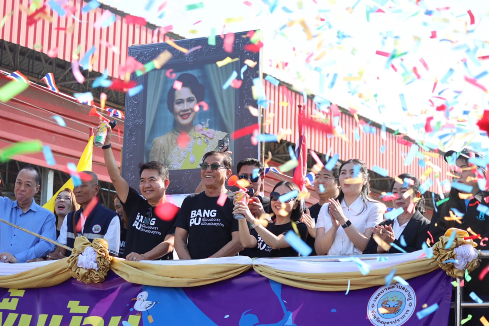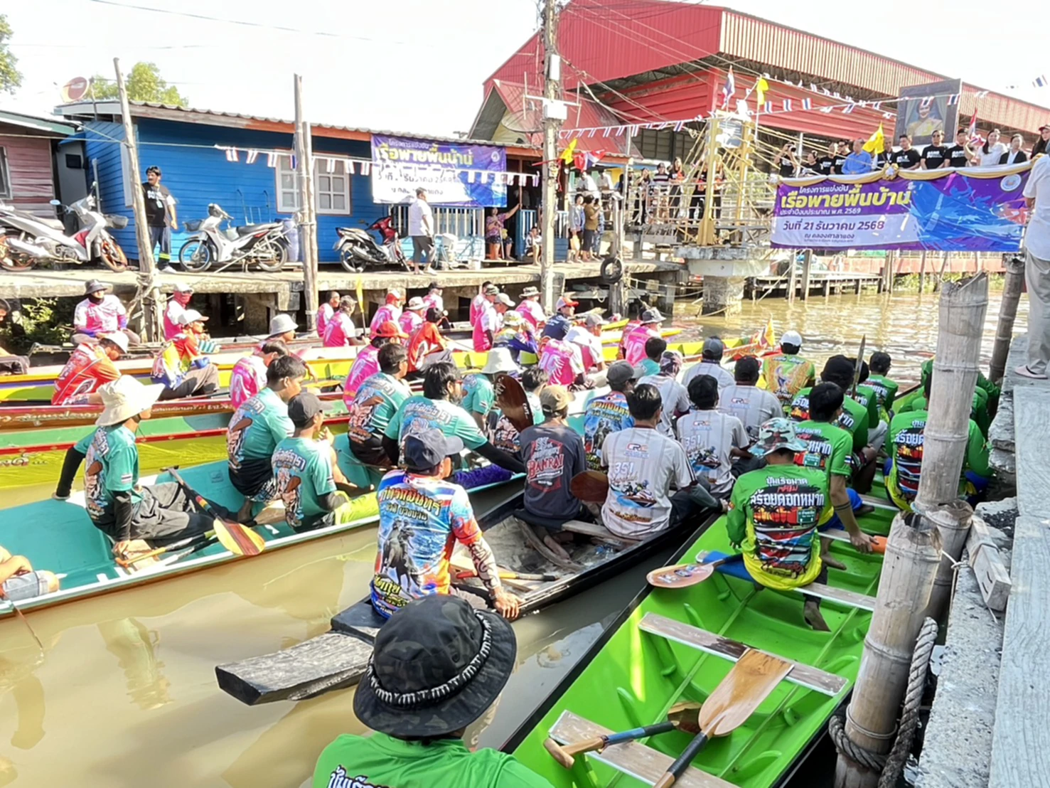 วันที่ 21 ธันวาคม 2568 ภายในชุมชนคลองศาลาแดง ต.ท้ายบ้าน อ.เมือง จ.สมุทรปราการ นายธีรพล ชุนเจริญ นายกเทศมนตรีตำบลบางปู ให้เกียรติเป็นประธานเปิดการแข่งขันเรือพายพื้นบ้าน ประจำปีงบประมาณ พ.ศ.2569 โดยมี นางสาวปารณีย์ นาคคำ ปลัดเทศบาลฯ กล่าวรายงานถึงวัตถุประสงค์ของการจัดโครงการ พร้อมด้วย คณะผู้บริหาร เลขานุการ คณะสมาชิกสภาเทศบาล หัวหน้าส่วนราชการ ร่วมชมการแข่งขันเรือพายพื้นบ้านคลองศาลาแดง สมุทรปราการ