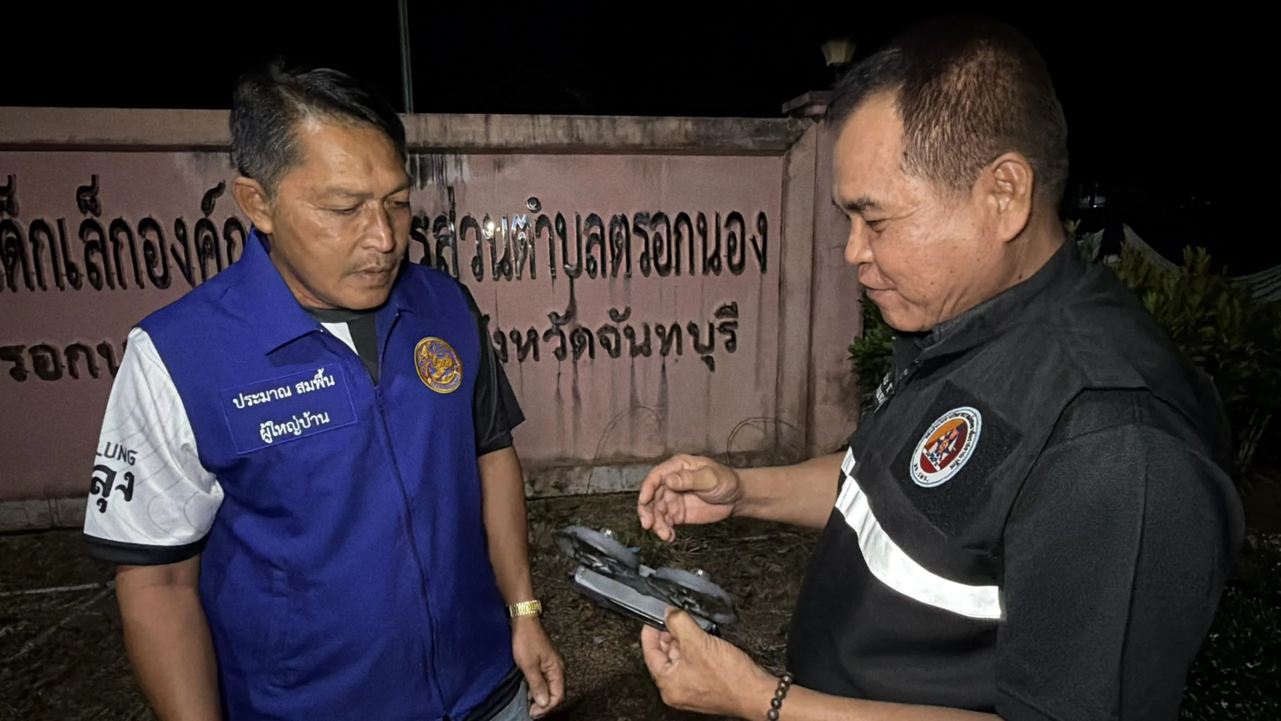 หลังจากได้รับแจ้ง เรือตรี ศิวะ ทองภักดี เจ้าหน้าที่กองอำนวยการรักษาความมั่นคงภายในอาณาจักร จังหวัดจันทบุรี จึงเดินทางไปตรวจสอบทันที เบื้องต้นพบว่าโดรนที่พบดังกล่าว เป็นโดรนของเล่น ราคาหลักพันกลางๆ มีคุณภาพต่ำ บินได้แต่ไม่มีถ่ายภาพไม่ชัดเจน บินได้ไม่ไกล ไม่เกิน 100-200 เมตร