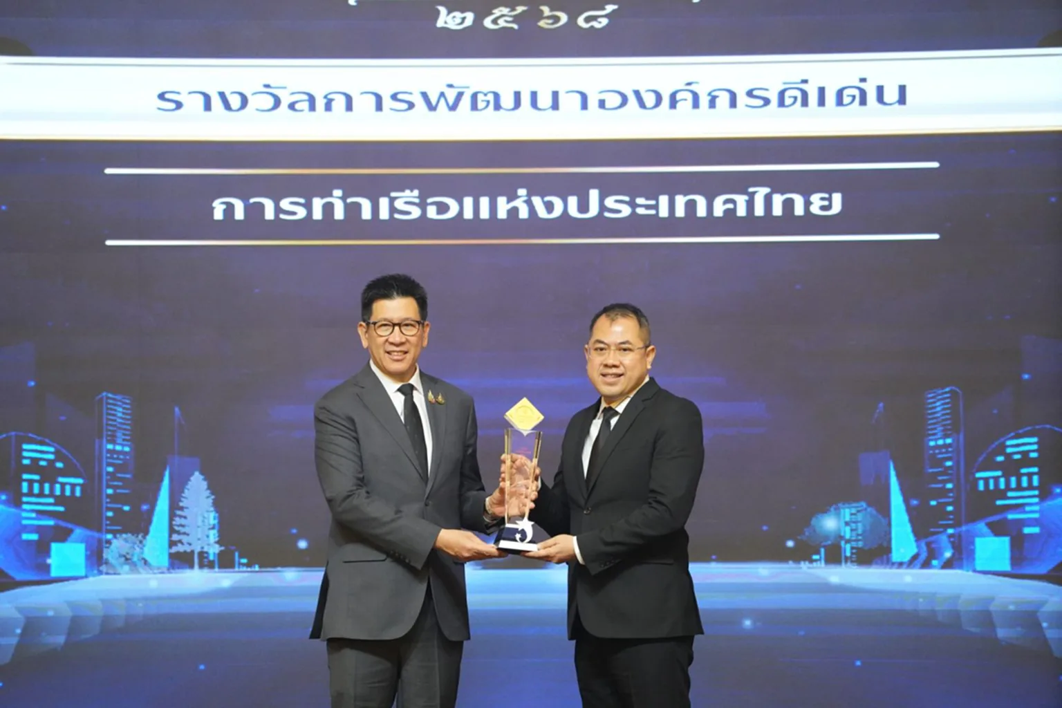 การท่าเรือแห่งประเทศไทย (กทท.) ได้รับรางวัลเกียรติยศรัฐวิสาหกิจดีเด่นประจำปี 2568 จากสำนักงานคณะกรรมการนโยบายรัฐวิสาหกิจ (สคร.) ประเภทรางวัล “การพัฒนาองค์กรดีเด่น” องค์กรที่มีการดำเนินงานโดดเด่นด้านการพัฒนาศักยภาพ และมีความสามารถในการปรับตัวสูง