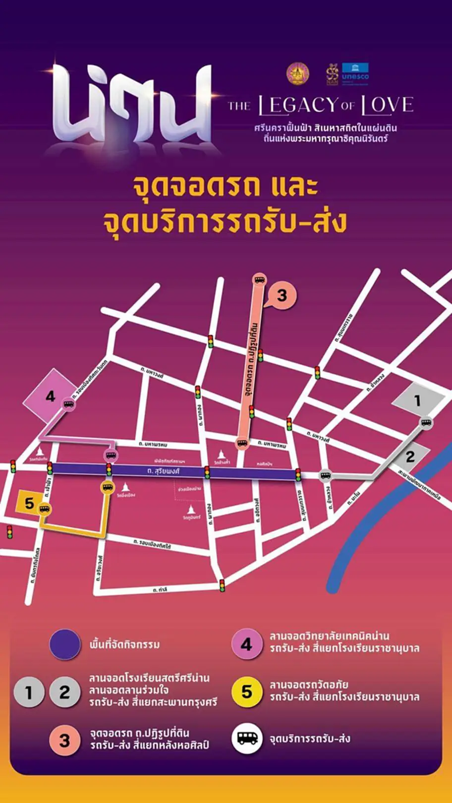 อย่างไรก็ตาม เพื่อให้การเตรียมสถานที่จัดงาน (Setting up) ดำเนินไปอย่างเรียบร้อยควบคู่กับการใช้ชีวิตประจำวันของประชาชน จังหวัดน่านขอความร่วมมือผู้ใช้รถใช้ถนนบริเวณดังกล่าว ขับขี่ด้วยความระมัดระวัง เนื่องจากมีการติดตั้งโครงสร้างและอุปกรณ์บางส่วนสำหรับการจัดงาน พร้อมขออภัยในความไม่สะดวกมา ณ โอกาสนี้