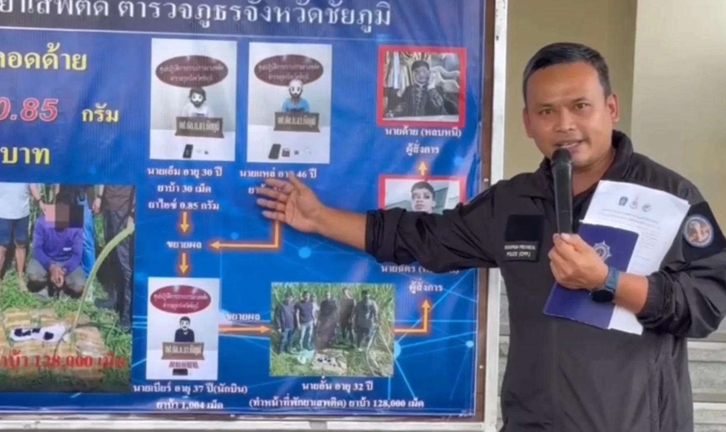 ต่อมาวันที่ 19 ธ.ค. 68 เจ้าหน้าที่ได้เข้าจับกุม “นายเบียร์” เอเย่นต์รายสำคัญใน อ.จัตุรัส พร้อมยาบ้า 1,004 เม็ด และอายัดรถกระบะอีซูซุ ก่อนจะรีดข้อมูลจนทราบแหล่งกบดานของ “คลังยา” จนกระทั่งวันที่ 21 ธ.ค. 68 กำลังตำรวจได้บุกจู่โจมจับกุม นายอนุชิต หรือ “อั๋น” อายุ 32 ปี ได้บริเวณป่าอ้อย ต.ละหาน อ.จัตุรัส พร้อมยาบ้าในครอบครองสูงถึง 128,000 เม็ด