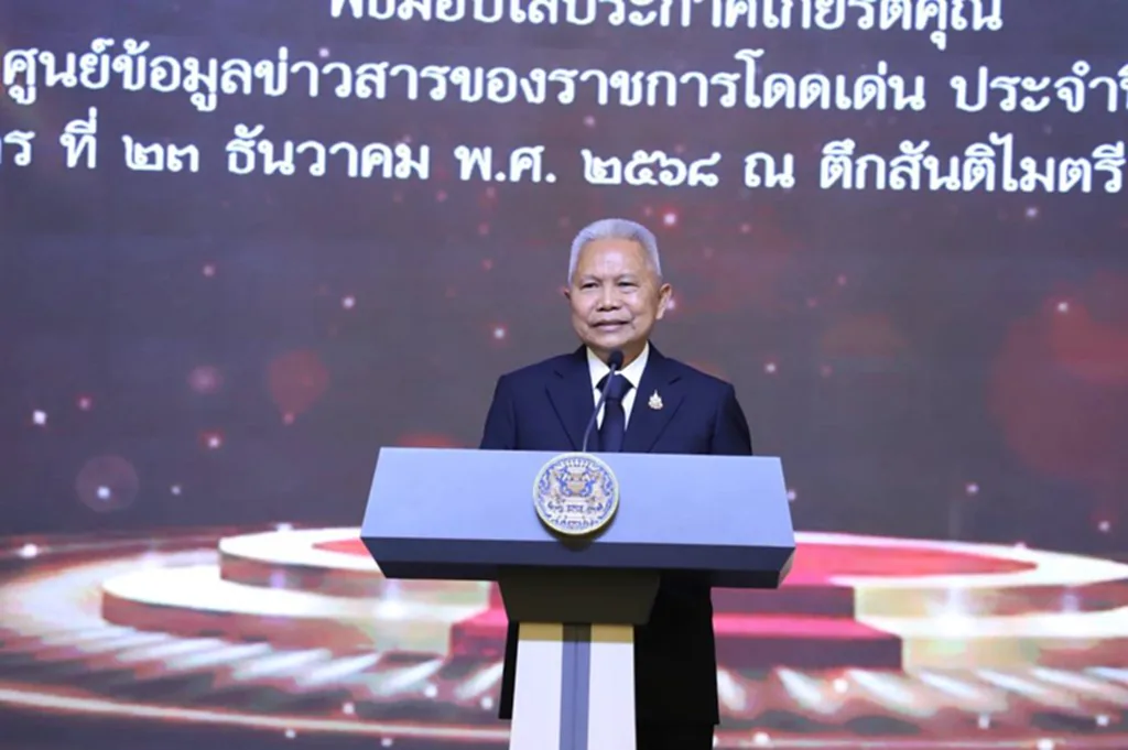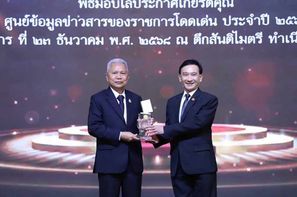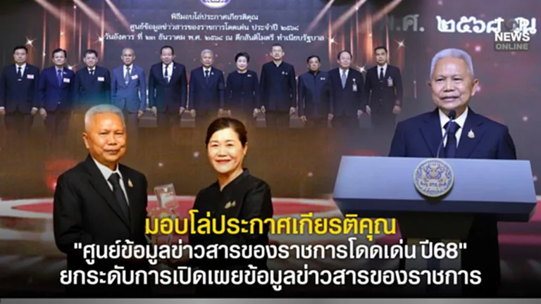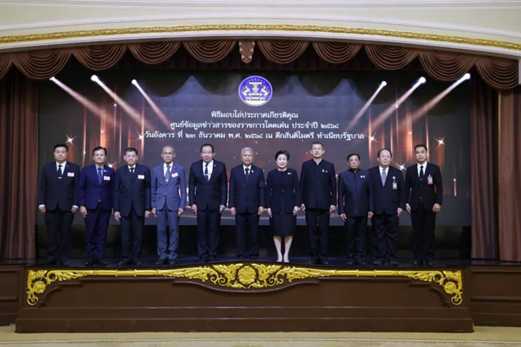 วันที่ 23 ธันวาคม 2568 นายโสภณ ซารัมย์ รองนายกรัฐมนตรี เป็นประธานในพิธีมอบโล่ประกาศเกียรติคุณศูนย์ข้อมูลข่าวสารของราชการโดดเด่น ประจำปี 2568 ณ ตึกสันติไมตรี ทำเนียบรัฐบาล โดยมีหน่วยงาน เข้าร่วมทั้งสิ้น 98 หน่วยงาน ในการนี้ นางยุพา ทวีวัฒนะกิจบวร ปลัดสำนักนายกรัฐมนตรี พร้อมด้วยผู้บริหารและเจ้าหน้าที่สำนักงานปลัดสำนักนายกรัฐมนตรี เข้าร่วมพิธีด้วย