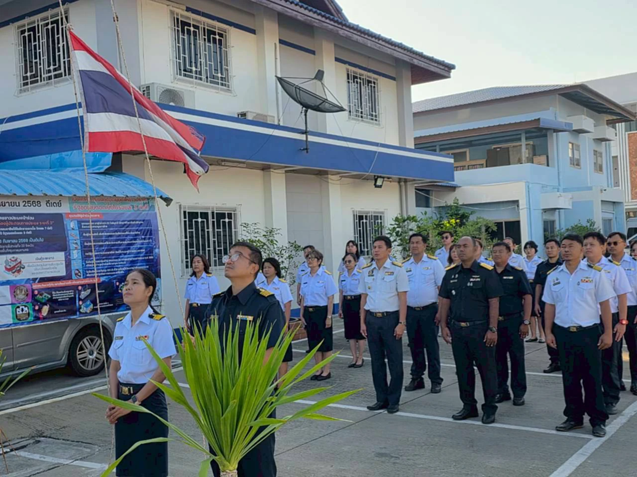 วันจันทร์ที่ 22 ธันวาคม 2568 เวลา 08.00 น. ณ สำนักงานประมงจังหวัดสมุทรสาคร อำเภอเมืองสมุทรสาคร จังหวัดสมุทรสาคร นายเผดิม รอดอินทร์ ประมงจังหวัดสมุทรสาคร ประธานคณะกรรมการขับเคลื่อนนโยบายของกรมประมง (Fishery Committee – FC) จังหวัดสมุทรสาคร เป็นประธานในกิจกรรมเคารพธงชาติและร้องเพลงชาติไทย ณ บริเวณด้านหน้าสำนักงานประมงจังหวัดสมุทรสาคร อำเภอเมืองสมุทรสาคร จังหวัดสมุทรสาคร