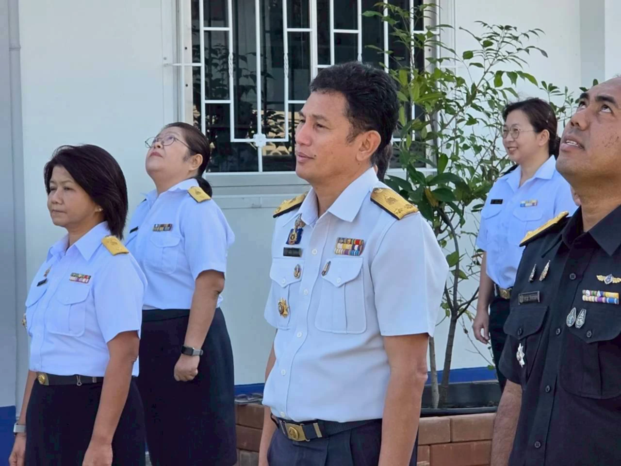 คณะกรรมการขับเคลื่อนนโยบายของกรมประมง สมุทรสาคร จัดกิจกรรมเคารพธงชาติและร้องเพลงชาติไทย